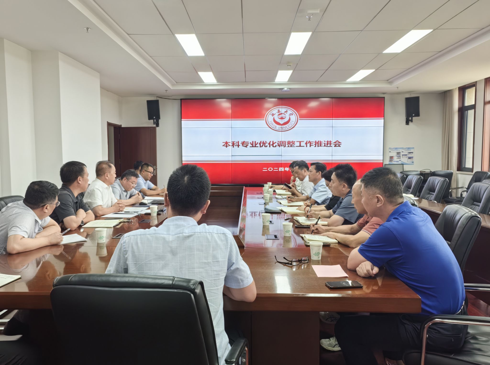 本网讯 为进一步深化教育教学改革,提高人才培养质量,优化调整学校学科专业布点,8月16日下午,beat365在新城校区行政楼六楼会议室召开本科专业优化调整工作推进会。校党委委员、副校长付峰,生命科学学院等9个学院院长、主管教学副院长,人事处、规划处、学工部、教务处等有关部门主要负责人参会。会议由教务处副处长董庆来主持。