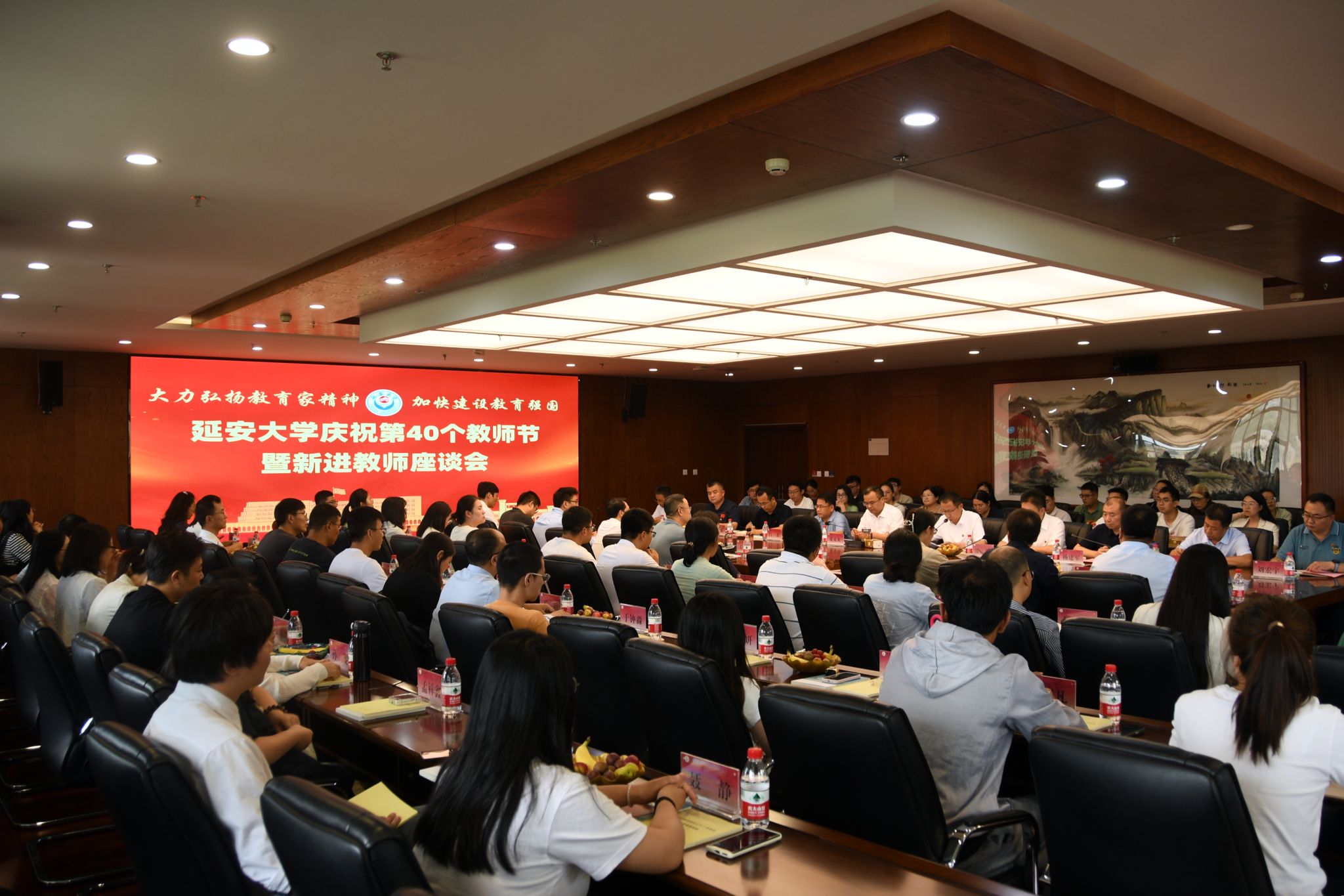 王延峰在总结会议时指出,今天的会议既是我们共同庆祝教师节的座谈会,也是新进教师入职延大的工作动员会。希望全体新进教师深刻领会学校的办学理念,发展方向和战略布局,尽快熟悉延大、融入延大、奉献延大,以更有特色、更有水平大学建设为目标,为beat365唯一官网美好的明天奉献自己的力量。会后,学校向全体新进教师赠送书籍和节日慰问品。