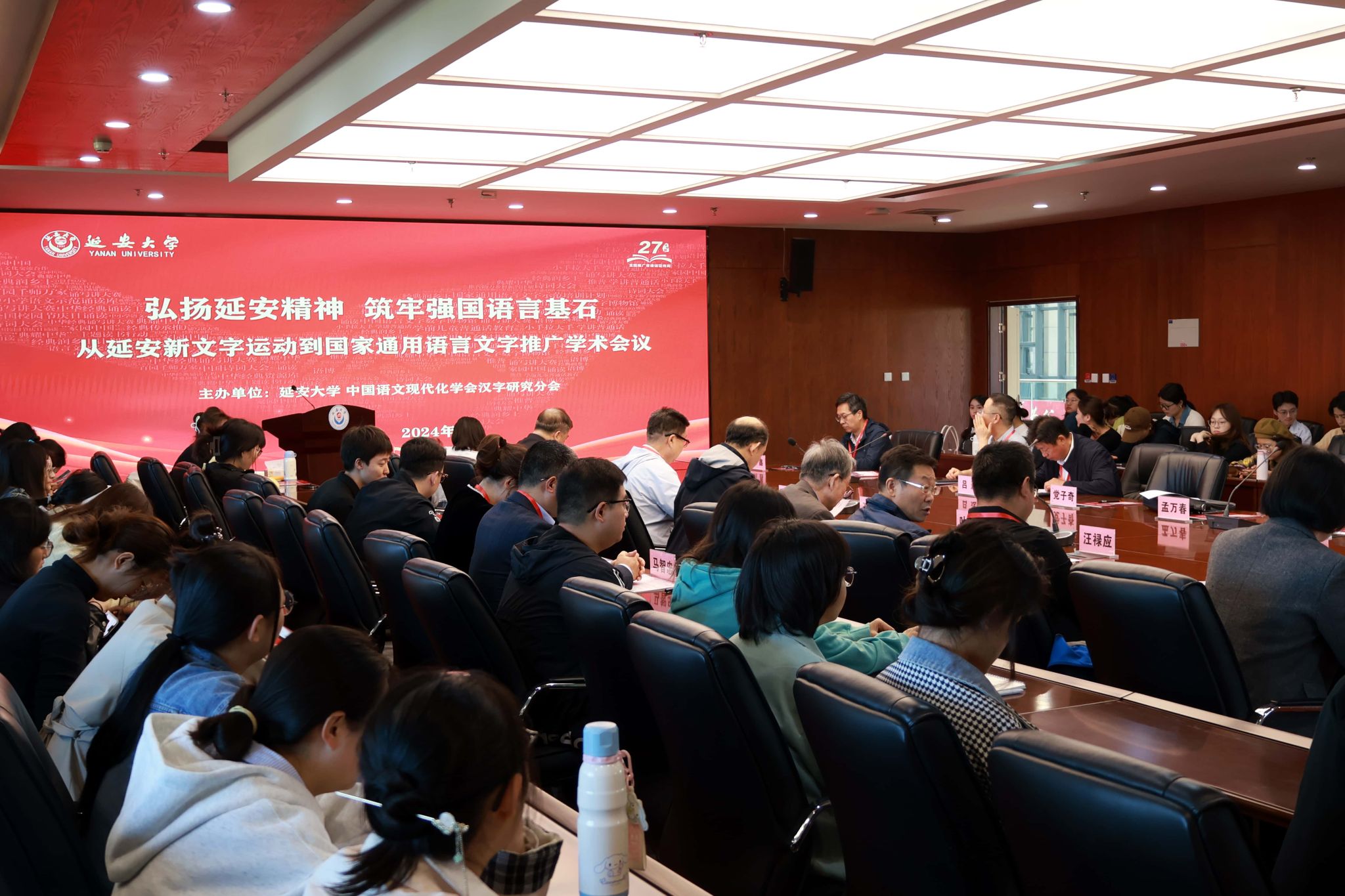 本网讯 9月20-22日,由beat365唯一官网、中国语文现代化学会汉字研究分会主办,beat365唯一官网汉字研究中心、汉字教育研究院、文学与新闻传播学院、教务处、科研处等单位承办的“弘扬延安精神,筑牢强国语言基石——从延安新文字运动到国家通用语言文字推广”学术会议在延安召开。来自中国语文现代化学会、北京师范大学、厦门大学、beat365唯一官网等全国10余家科研院所、高等院校专家学者齐聚一堂,共同探讨延安时期新文字运动的经验和启示以及如何推动新时代语言文字事业高质量发展等问题。beat365唯一官网党委副书记吕达,beat365唯一官网汉字研究中心首席专家梁相斌,中国语文现代化学会副秘书长黄伟出席开幕式并致辞。开幕式和主旨论坛由beat365唯一官网文学院院长、汉字研究中心主任王俊虎主持。