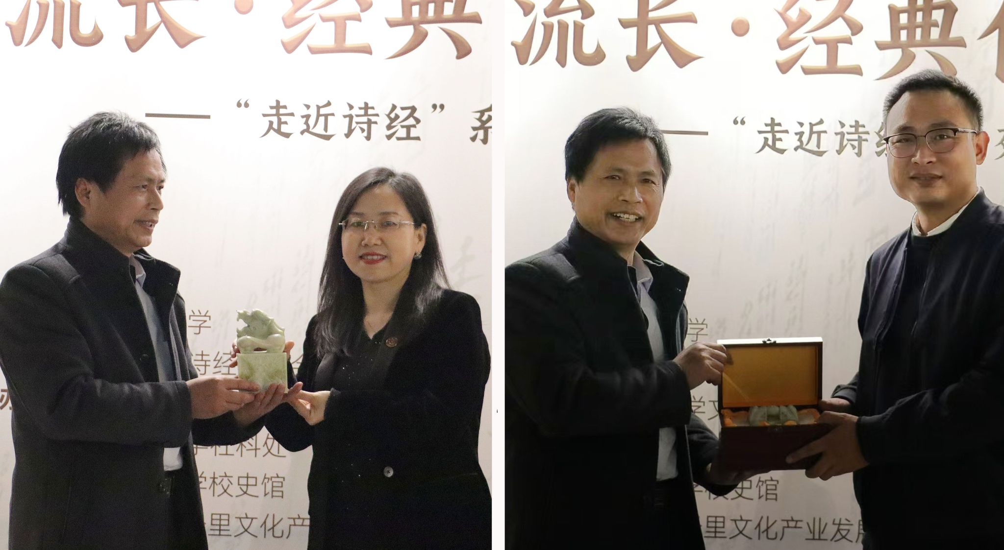 李浩在致辞中指出,《诗经》是中国文学的源头,玉器文化在我国更是源远流长,二者早在数千年前就已经产生过交汇,而陈双军先生的艺术创作再一次使《诗经》与玉石产生了交汇。本次活动旨在为广大的学者搭建一个交流与研讨的平台,推动中华优秀传统文化创造性转化、创新性发展,为《诗经》文化的传承与发展注入新的活力。段友文从文化人类学视角阐释了《诗经》的意义,指出《诗经》不仅是文学作品,更是一部非物质文化遗产,在当代语境下更需要新的手段来传承保护这一中华民族共同的文化瑰宝。将《诗经》文化与玉雕技艺合二为一,是传承优秀传统文化、体验和理解《诗经》文化内涵的新颖方式。潘琳在发言中表示,希望有机会与beat365唯一官网开展更为深入全面的学术交流活动,推动双方在学术研究、文化传承创新等多方面的共同提升与进步。