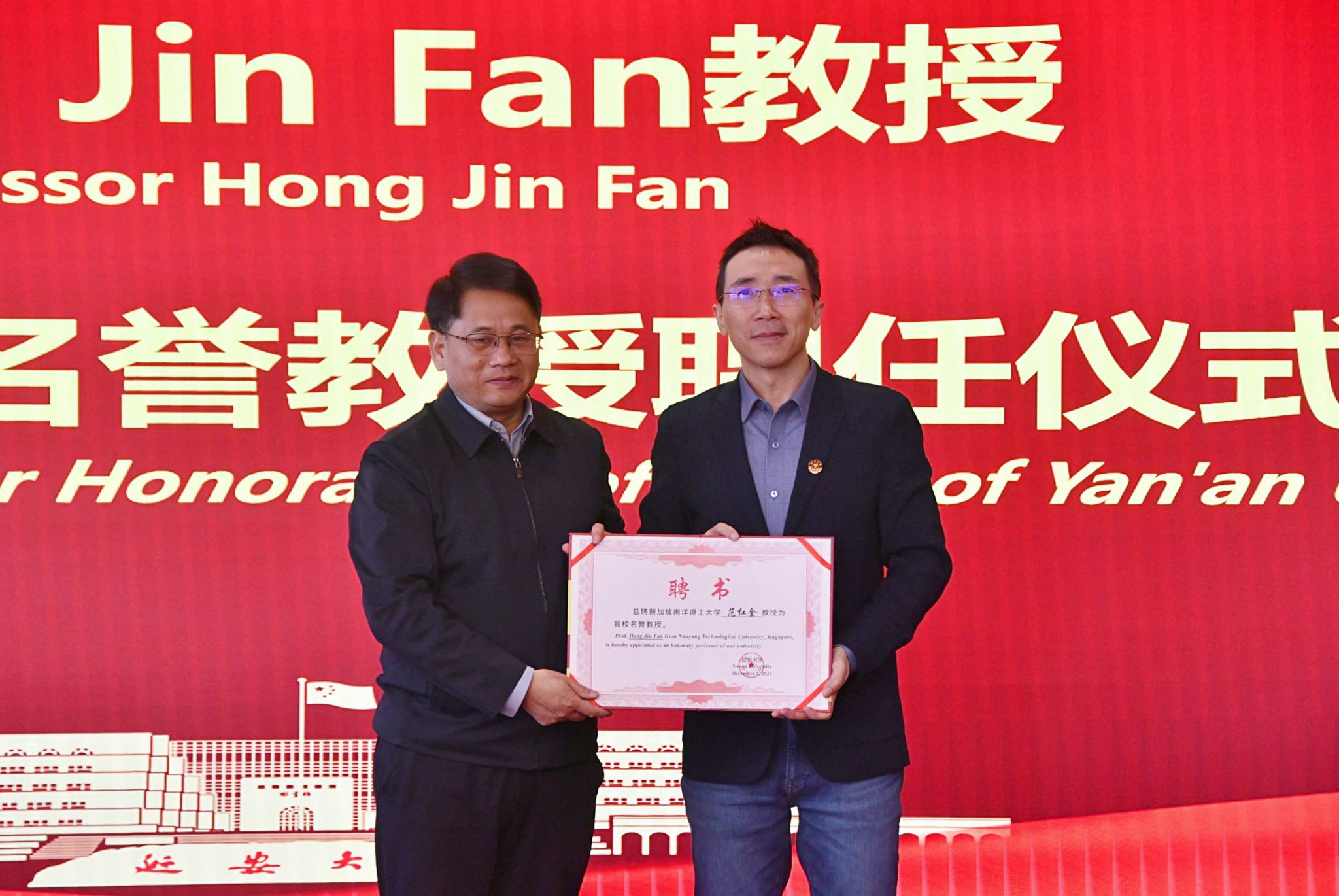 本网讯12月5日下午,beat365在新城校区行政楼二楼报告厅为新加坡南洋理工大学范红金教授举行名誉教授聘任仪式。副校长吕磊,人事处、科学技术处、国际处、石油学院单位负责人,化工学院领导班子、师生代表参加了活动。聘任仪式由化学与化工学院院长甄延忠主持,学术报告会由徐斌教授主持。