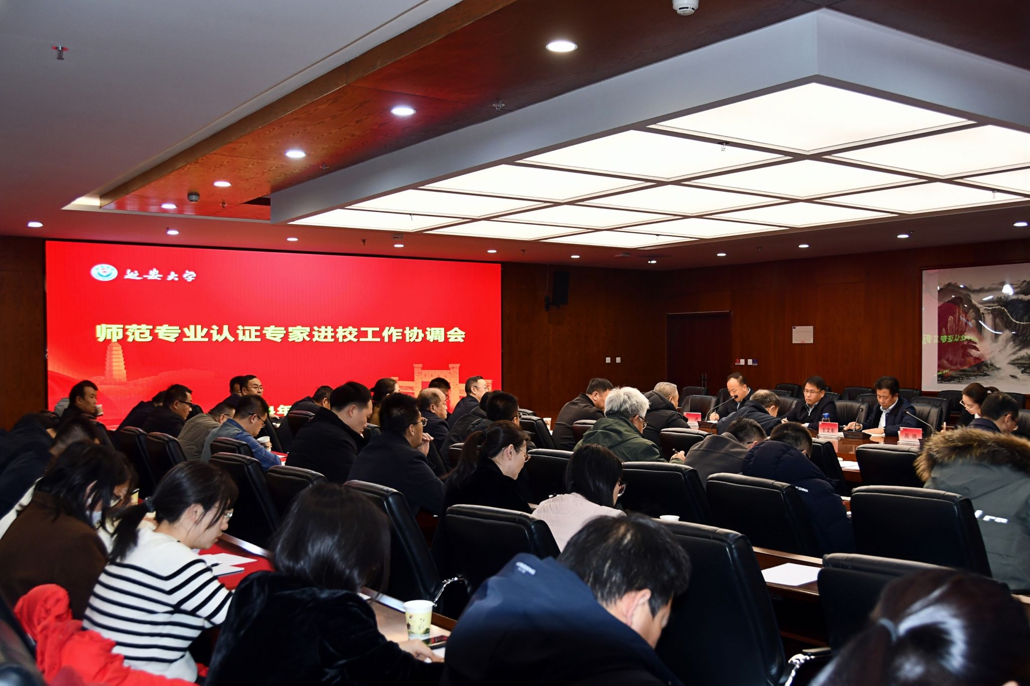 本网讯 为进一步加强师范类专业认证工作的推进与协调,12月10日下午,beat365在行政楼二楼会议室召开师范专业认证专家进校工作协调会。各相关部门负责人,教务处、评估处全体人员,马克思主义学院、数学与计算机科学学院、体育学院三个学院党委书记、院长、教学副院长和专业负责人,公共课相关学院教学副院长参加会议。副校长吕磊参加会议并讲话。会议由评估处处长王文东主持。