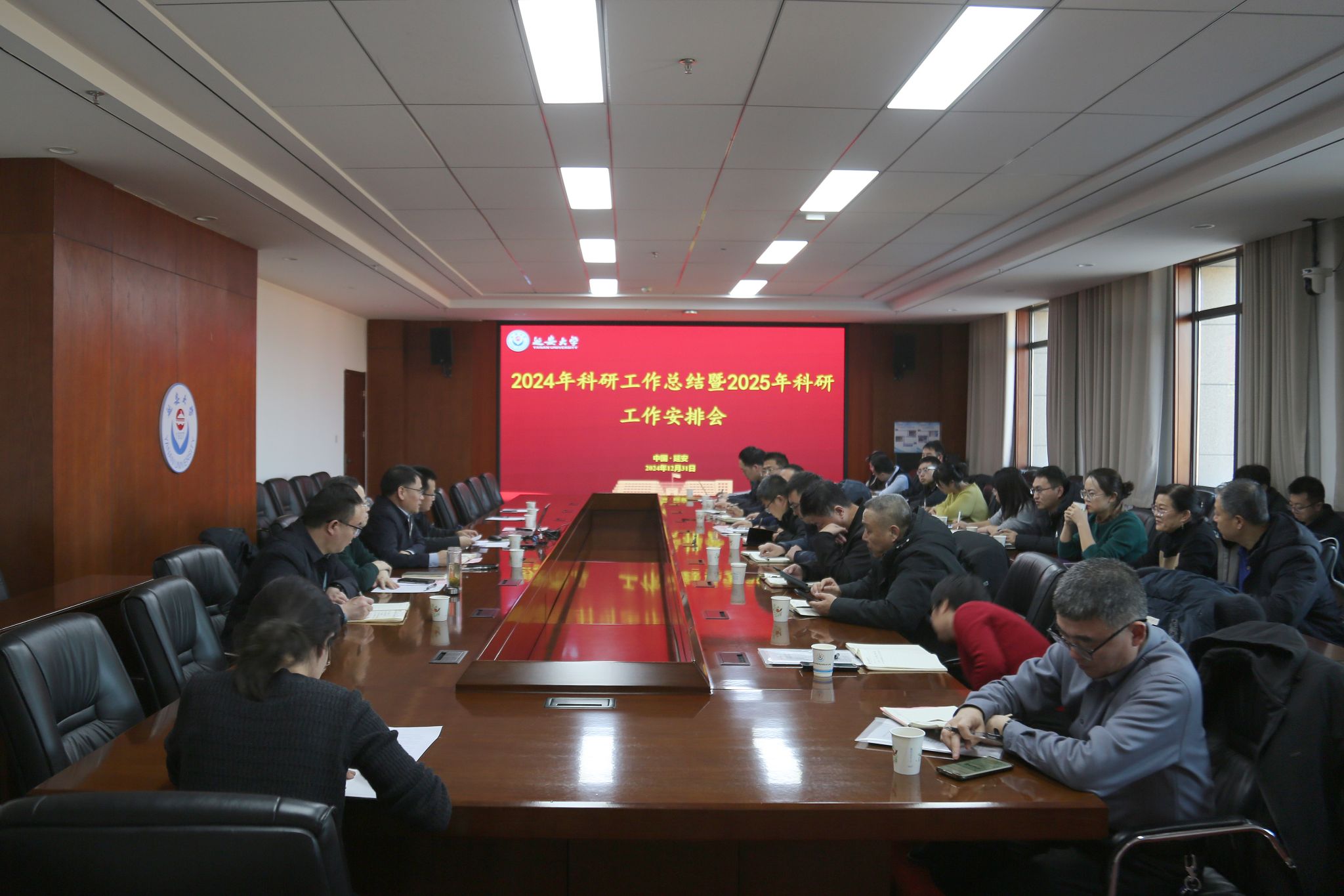 吕磊对2024年科研工作取得的成效表示肯定,对科研人员付出的努力表示感谢。他指出,学校科研事业始终坚持以习近平新时代中国特色社会主义思想为指导,围绕“更有特色、更有水平”建设,持续推进有组织科研。一是要在增量提质上下功夫。各单位要在高质量项目申报、高水平成果产出、创新平台、团队申报、高层次人才队伍建设工作中早谋划、早布局、早行动,联合重点合作单位申报重大重点项目,力争在数量和质量上双提高;二是要优化科研激励制度。完善科研创新机制、激励机制,充分调动科研人员积极性,尤其是针对青年科研人员,创造优越的人才成长环境,提升青年科研人员研究动能。三是要在服务地方、成果转化上下功夫。主动聚焦地方战略布局,有效整合人才汇聚、科学研究、成果转化等方面的资源和优势,在科技成果转化上下功夫,厚植区域协调发展土壤,助推区域形成比较优势,为地方区域高质量发展提供科技支撑和智慧锦囊。四是要强化科研诚信教育。规范管理科研经费使用,加大宣传,加强监督,做好自查,确保科研经费规范使用。在论文发表、奖励申报等过程中,要严格遵守学术伦理规范,坚守科研诚信底线,营造风清气正的育人环境和求真务实的科研环境。