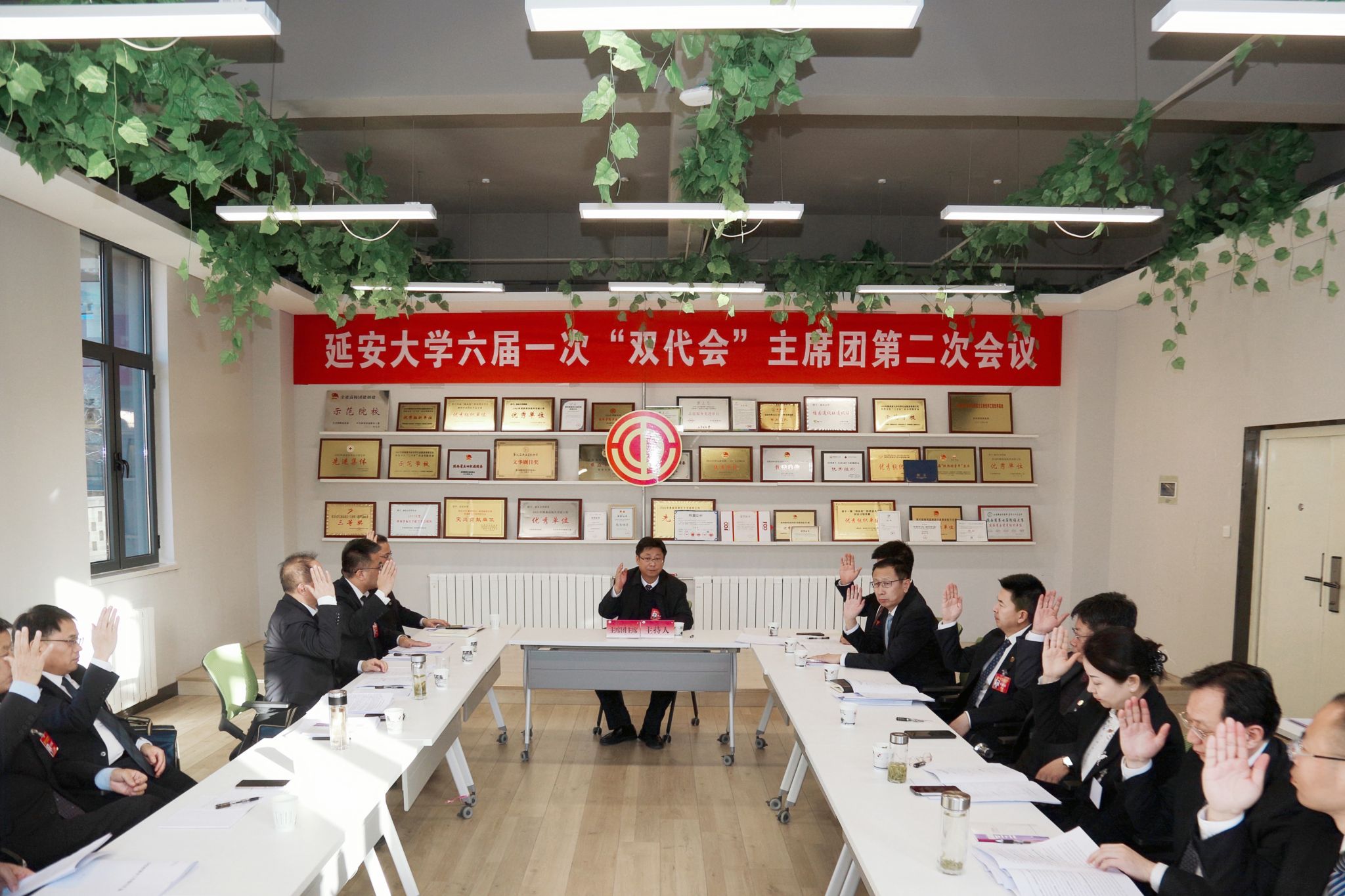 本网讯 1月12日下午,beat365六届一次“双代会”主席团第二次会议在新城校区学生活动中心215会议室举行。主席团成员参加会议。会议由大会秘书长、校党委副书记吕达主持。