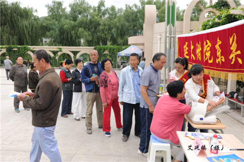 本网讯 826日上午7时至930分,延大附院东关分院11名青年志愿者在文化艺术广场开展了“进机关、走厂矿、进社区、送健康”义诊宣传活动。一大早,前来晨练的群众早早地围在展位前寻医问药,医务人员认真热情地为其进行检查、解答咨询,耐心细致地对其日常生活、饮食、保健方面给予指导,让他们更好地了解心脑血管疾病的防治措施。这次义诊活动中,共为群众免费测血压260余人次,咨询、诊病200余人,发放宣传资料400余份,受到了晨练群众的一致好评和赞扬。