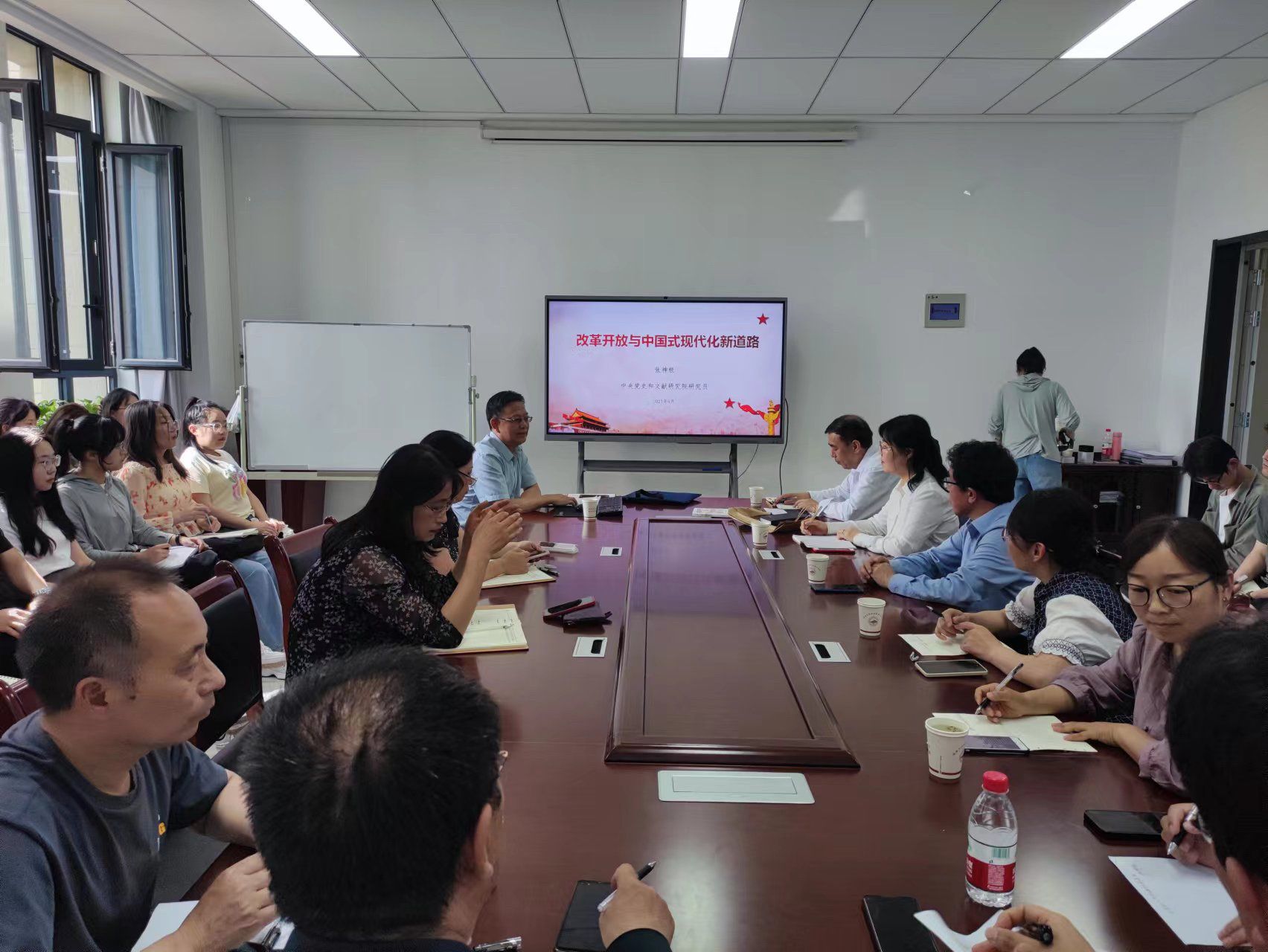 张神根报告的题目是《改革开放与中国式现代化新道路》。他从改革开放起步与中国式现代化的提出、全面改革开放与中国式现代化的探索、全面深化改革开放与中国式现代化新道路的创造等三个方面阐述了改革开放不同发展阶段中国共产党对中国式现代化的持续探索与实践。整个报告体现了历史与现实、理论与实践、国内与国外的有机结合,留给师生们许多的启迪与思考。