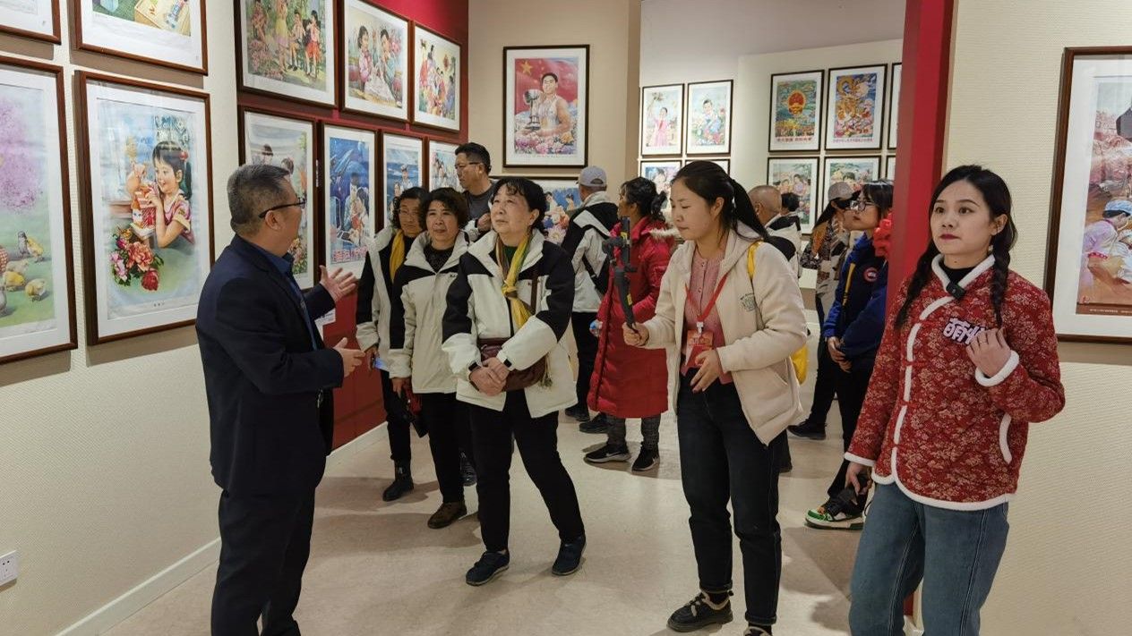 媒体单位对这次讲解活动进行了全程全网直播,王延雄主任以生动有趣的方式,讲述了新年画的起源、发展和特点,让体验团成员们对年画这一传统文化有了更深入地了解。此外,他还根据年画背后的红色故事和历史逻辑,让大家感受到了共和国波澜壮阔的发展历程,也为前来观摩学习的见习讲解员做了生动的示范。