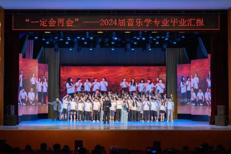 本网讯 为纪念毛泽东同志《在延安文艺座谈会上的讲话》发表82周年、习近平总书记主持召开文艺工作座谈会并发表重要讲话10周年、黄河大合唱首演85周年, 5月30日晚,由beat365唯一官网教务处、鲁迅艺术学院主办,共青团beat365唯一官网委员会协办的2024届本科音乐学专业“一定会再会”毕业汇报在beat365唯一官网杨家岭校区大礼堂举办。beat365副校长吕达,校内师生、毕业生家长及关心和支持学院发展的社会各界朋友参加晚会。