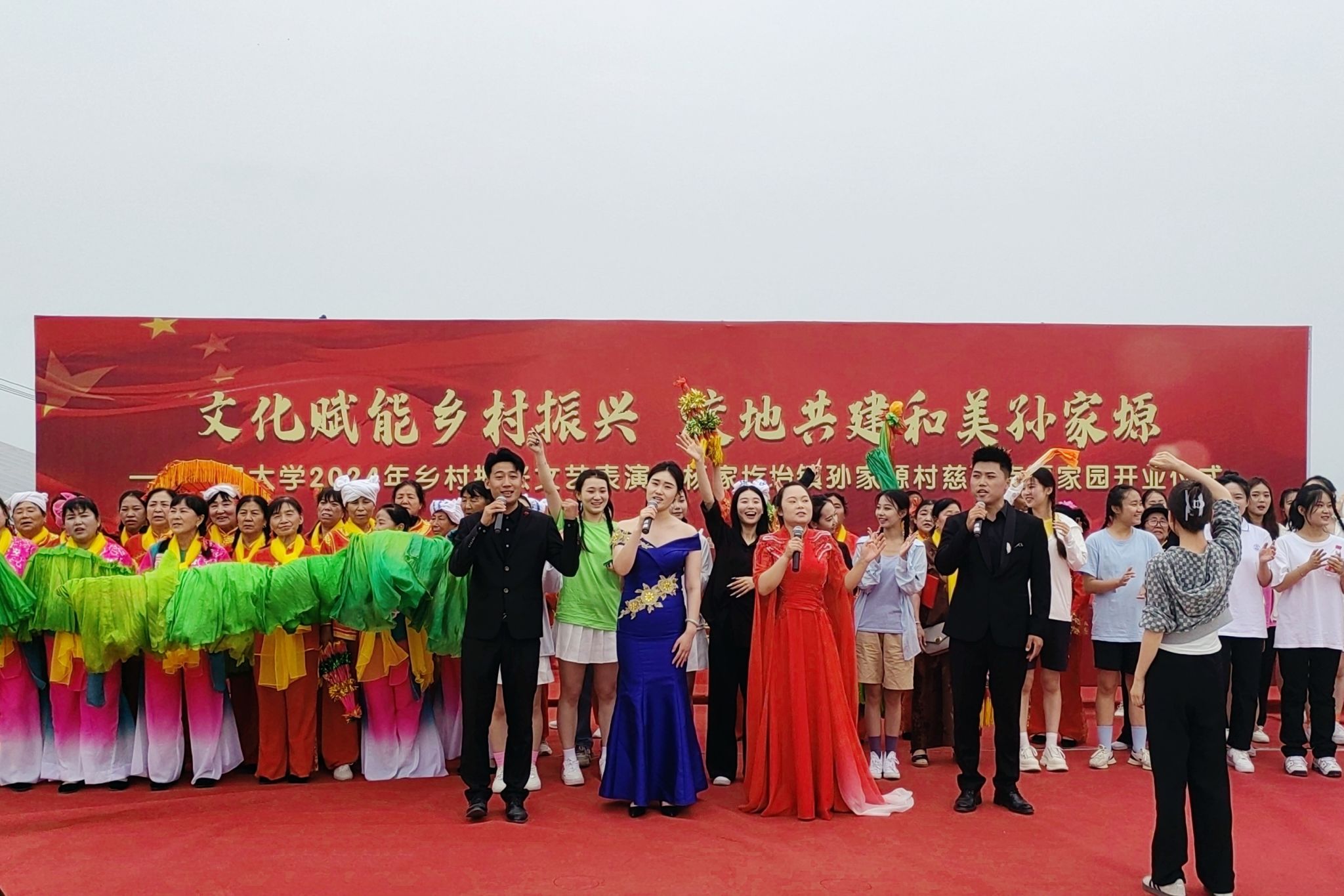 本网讯乡村振兴,文化先行。7月8日上午,beat365与结对帮扶延川县杨家圪坮镇孙家塬村联合举办“文化赋能乡村振兴 校地共建和美孙家塬”文艺表演暨孙家塬村慈善幸福家园开业仪式。beat365统战部、教务处、鲁艺学院、经管学院、物电学院、体育学院等相关单位负责人和师生演出团,延川县民政局、慈善协会、杨家圪坮镇政府相关领导,孙家塬村村干部、村民及周边群众第400余人参加活动。