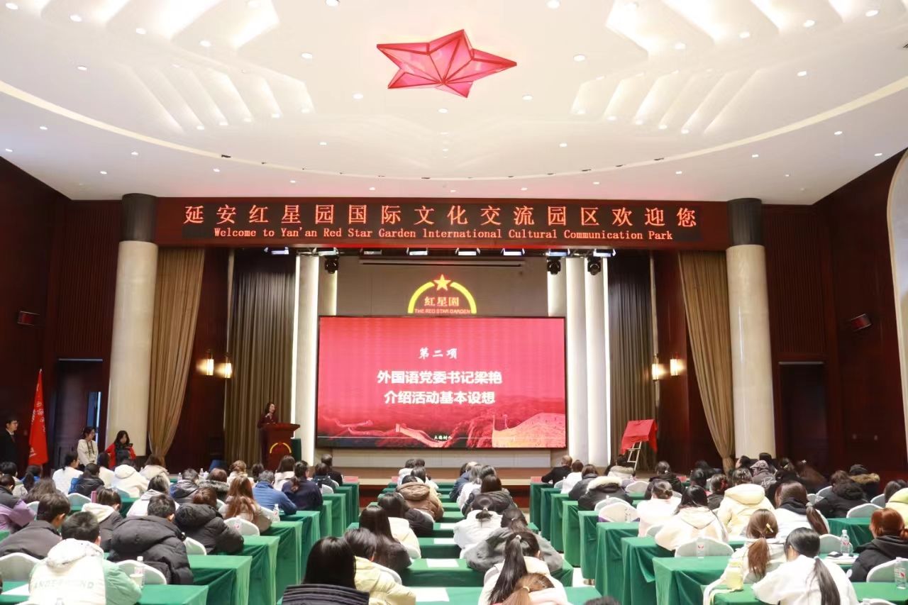 本网讯 为深入推进党建与业务的有机融合,构建符合外语学科专业实际的“党建+业务”新机制新举措,进一步提升人才培养质量,11月27日下午,外国语学院与延安红星园国际文化交流园区合作签约暨特色党建小组、红星宣讲队开营仪式在红星园会议厅举行。红星园董事长、部分干部,外国语学院领导班子成员和师生代表共计120余人参加活动。活动由外国语学院院长梁润生主持。