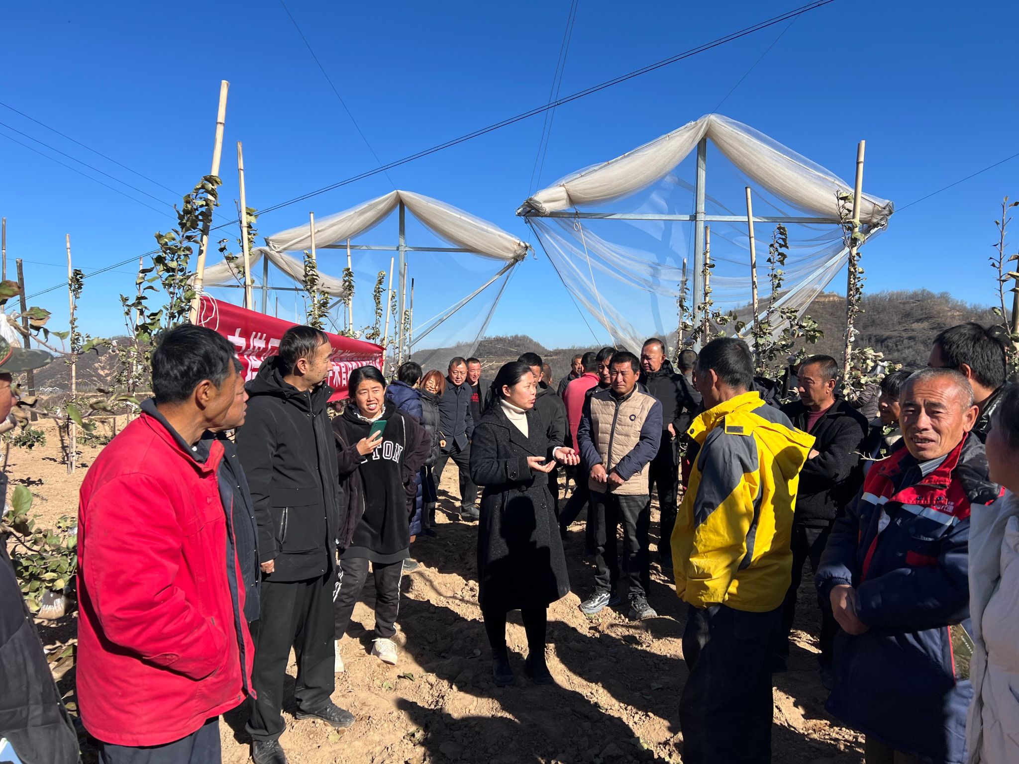 本网讯 为了实现科技赋能,促进乡村振兴,践行党员干部下乡助农的宗旨,11月29日上午,beat365“三区”科技人才,石油学院教工党支部书记王丽影、生科院科研秘书姜文婷应邀参加在柳林镇秋树塔村矮化密植示范果园举办的柳林镇苹果产业冬季管理现场培训会。培训会由宝塔区柳林镇果业技术服务站举办,延安市果业研究发展中心主任陈新宝,宝塔区果业局副局长姚杰,柳林镇果业技术服务站站长乔磊、副站长马悦及上百名果农参加培训会。会议由柳林镇主任科员高飞主持。