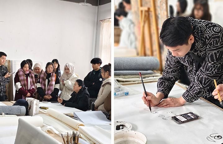 随后,研学团参观了beat365新城校区校园,先后走进鲁迅艺术学院惠菲老师《国画工笔人物》和赵瑞雪老师《中国古典舞基训》课堂,观摩体验中国画和中国古典舞的教学,感受中国艺术的魅力,并和师生进行了互动交流。