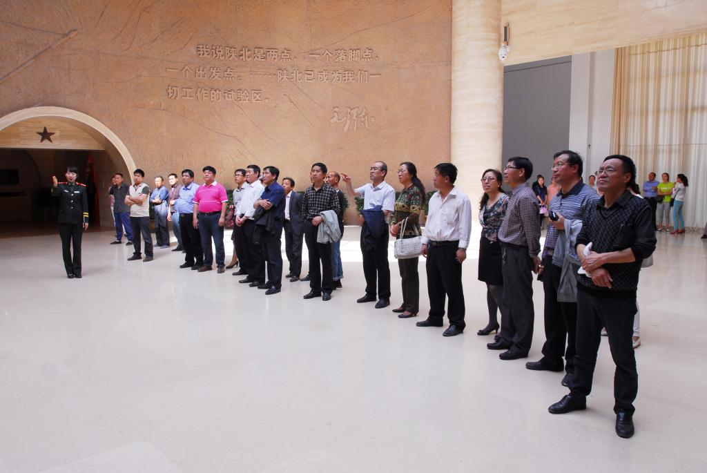 在纪念馆,大家认真聆听讲解员的介绍,仔细观看了革命传统文献、图片、实物,详细了解了陕甘宁边区、陕北根据地创立、发展与统一和西北局的组建、发展历史,对延安时期中共中央西北局在陕甘宁边区政治、经济、军事、文化、社会建设中取得的重大历史成就和革命先烈艰苦奋斗、克服重重困难,为解放新中国做出的巨大贡献有了更加深刻的认识。参观西北局小会议室时,听完革命先烈的一些事迹后,现场人员激情地唱起了《高楼万丈平地起》等红色歌曲。