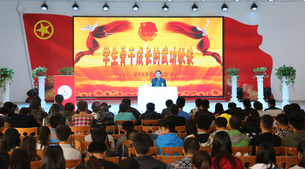 会上,李部长结合自己从事学生干部和工作经历,以张无忌的三项神功导入了学生骨干成长必备的三个“秘诀”:一是要苦练内功,要有明确的信仰,坚定的理想信念,健全的人格;二是要不断提升自己的能力和本领,建立合理的知识结构,练就过硬的三项基本功,即会说话、会办文、会做事,培养扎实的工作作风;三是作为学生干部要学会正确的运用方法,正确地运用思维方式、注重团队合作和不断创新进取。