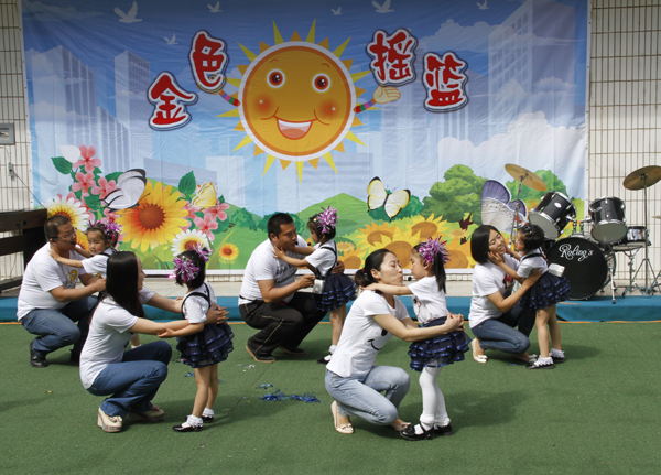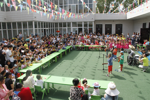 大一班的大合唱《种太阳》、《每当我走过老师的窗前》拉开了活动的帷幕。孩子们动情的表演,展现了对老师的浓厚情谊和天真烂漫;小班的舞蹈《数鸭子》童趣四溢,逗乐了所有观众,迎来了热烈的掌声;中班小朋友的歌舞《你是太阳,我是星星》孩子们的爸爸妈妈们也参与其中,表现出了父子和母女之间的浓浓亲情,感动了所有观众迎来阵阵掌声;大班的舞蹈《小苹果》《蜗牛与黄鹂鸟》等。孩子们穿着“潮流装”,戴着小眼镜,抱着小吉他,特个性,还有架子鼓伴奏的小朋友,个个威风凛凛,把大家震住了。
