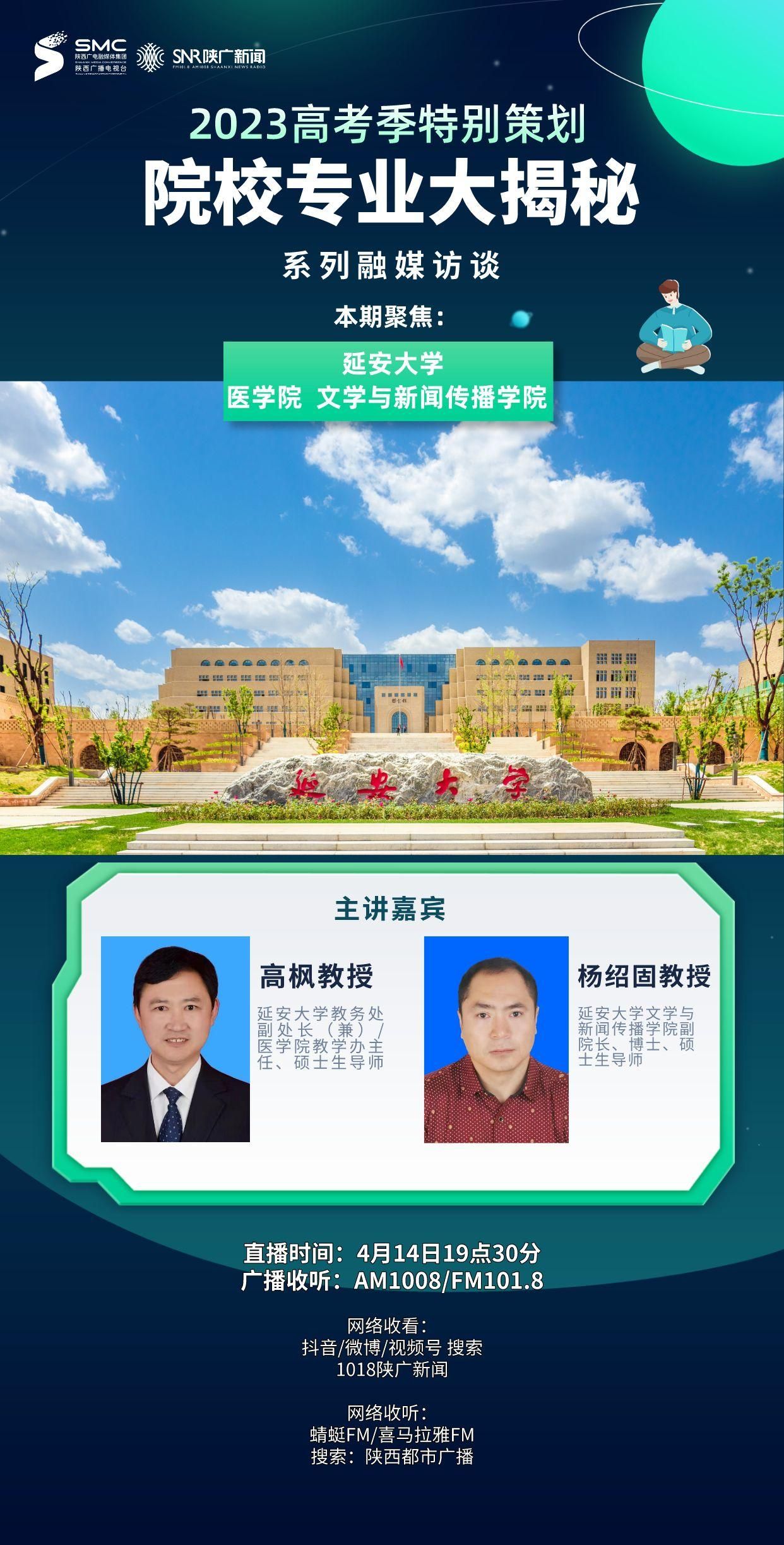 应陕广新闻《教育百分百》节目邀请,beat365医学院高枫教授和文学院杨绍固教授通过FM101.8、AM1008、抖音、微博、视频号、喜马拉雅FM、蜻蜓FM等众多平台向广大考生和家长宣传了beat365的基本情况、本科专业设置及人才培养特色优势、毕业生就业及深造情况以及报考建议等情况,累计收听收看达万余人次,招生宣传效果良好。