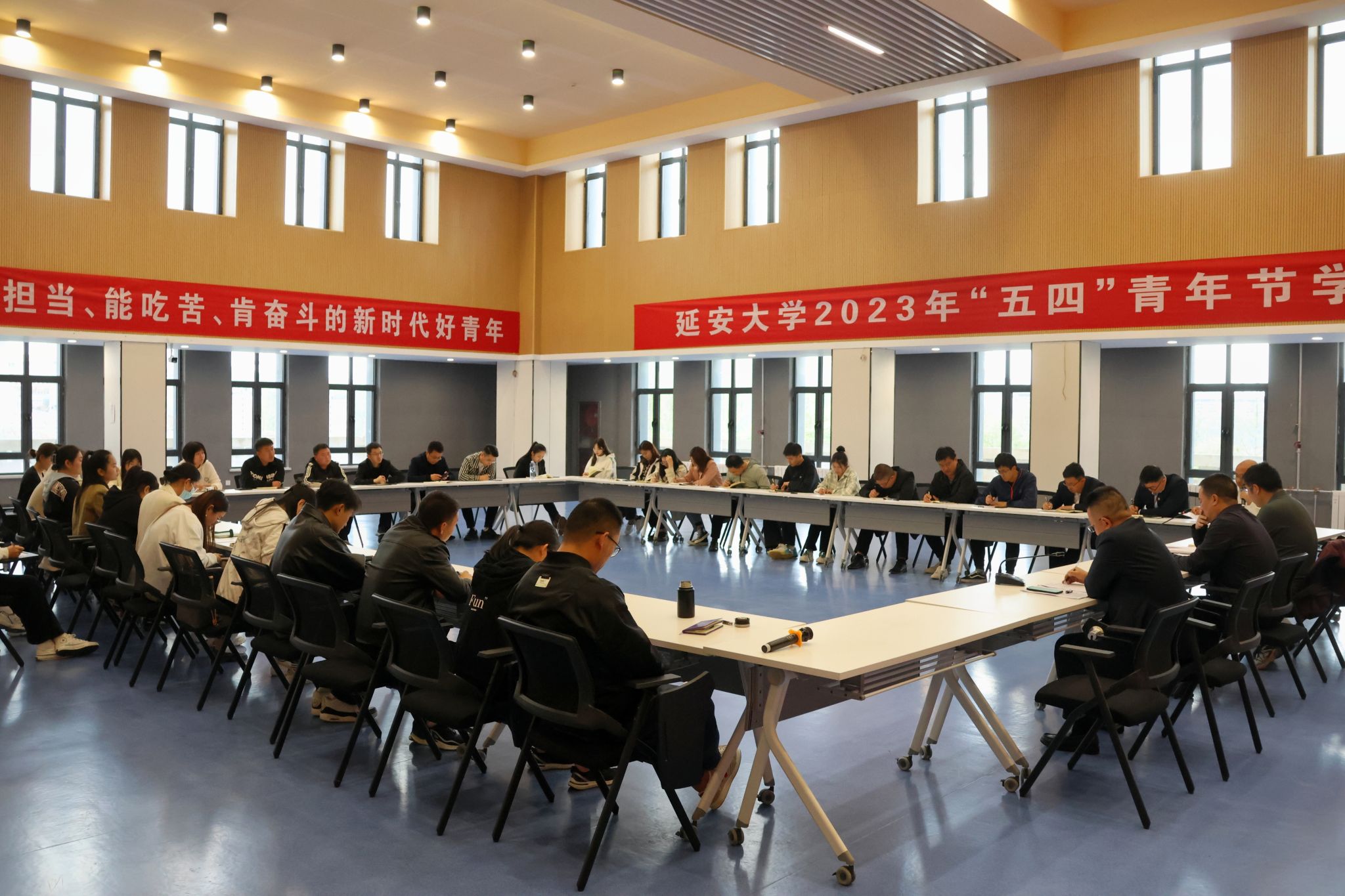 本网讯 为纪念五四运动104周年,激励beat365学工干部和青年学子继承发扬“五四精神”、厚植家国情怀,5月4日下午,学工系统在新城校区大学生活动中心五四报告厅组织召开了2023年“五四”青年节学习座谈会,党委学工部部长张翔出席并讲话。学工部、校团委工作人员,各学院分团委书记,辅导员代表和学生代表和共计50余人参加了会议。座谈会由校团委书记刘江主持。