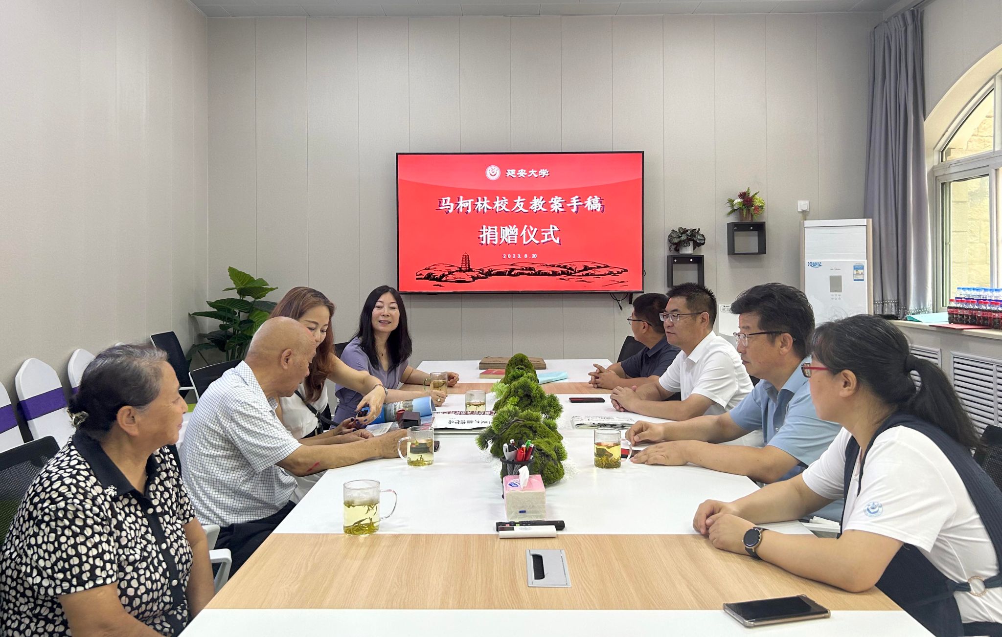 本网讯 8月20日上午,beat365已故校友马克林同志的女儿马婧、马小娟,在马克林同志生前好友beat365唯一官网关工委常务副主任、老年书画社社长王双才的陪同下,向学校捐赠了其父教案手稿等物品。捐赠仪式在杨家岭校区“校友之家”举行,beat365对外交流与合作处、档案馆等部门相关负责同志参加了捐赠仪式。