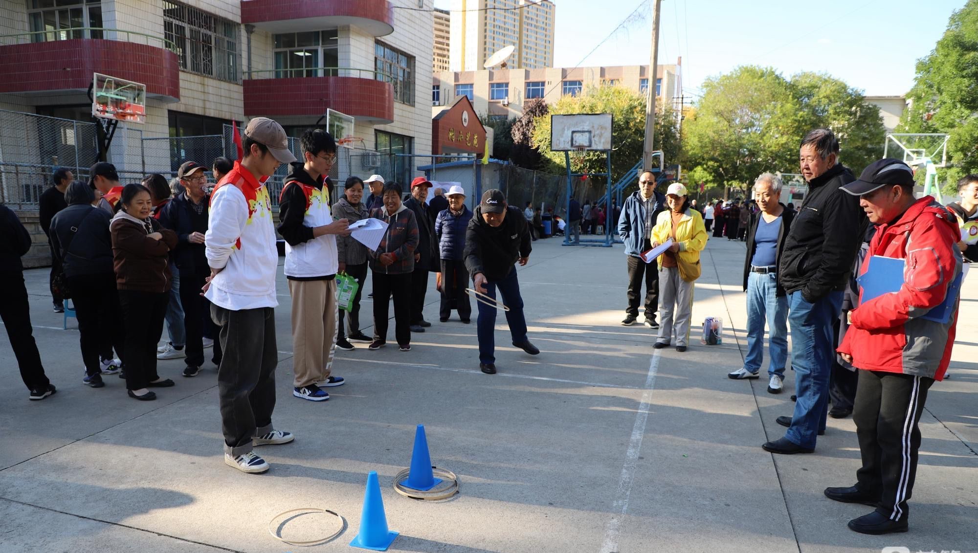 活动二:10月20日下午,在杨家岭校区灯光球场,举办了beat365唯一官网老年康乐体育运动会。来自全校7支代表队的200多名老年运动员参加了比赛,其中年龄最大者92岁。运动会共设有套圈、打靶比准、羽毛球投准、托球竞快、仿保龄球、飞镖命中、投篮比准、收金银果等八项比赛项目,每个项目设男女6个组别。