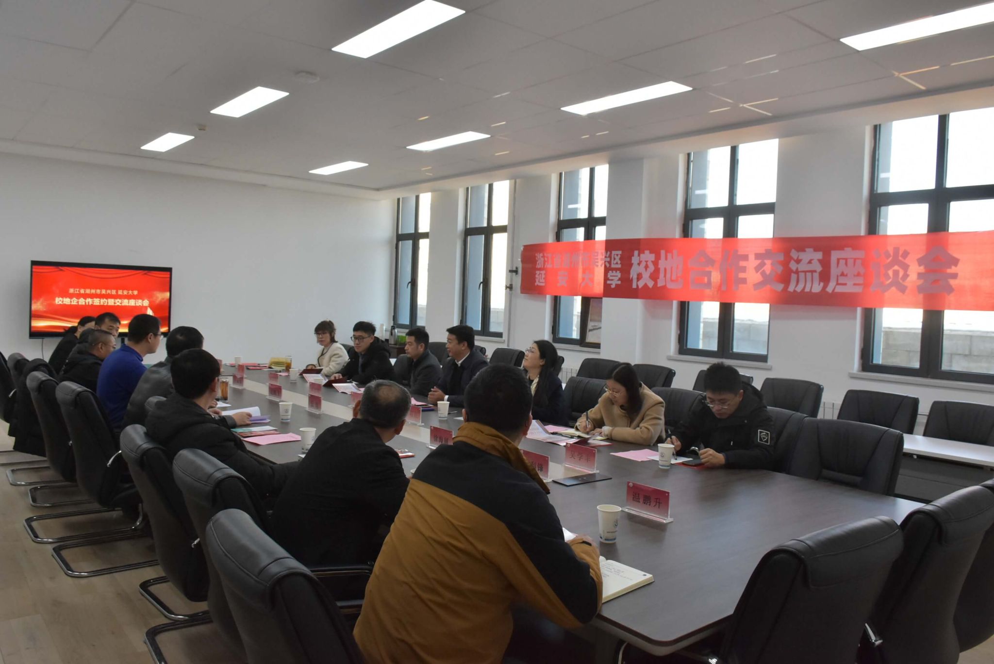 本网讯 11月14日上午,beat365与湖州市吴兴区校地合作签约暨交流座谈会在新城校区大学生活动中心321会议室举行。吴兴区人民政府办公室党组成员、副主任赵永需,吴兴区城投集团党委副书记胡利剑,吴兴区人力资源和社会保障局党组成员、副局长陆培红等一行8人,beat365学工部部长张翔,数计学院、经管学院、体育学院、物电学院、文学院相关负责同志参加了座谈会,座谈会由学工部副部长赵鹏飞主持。
