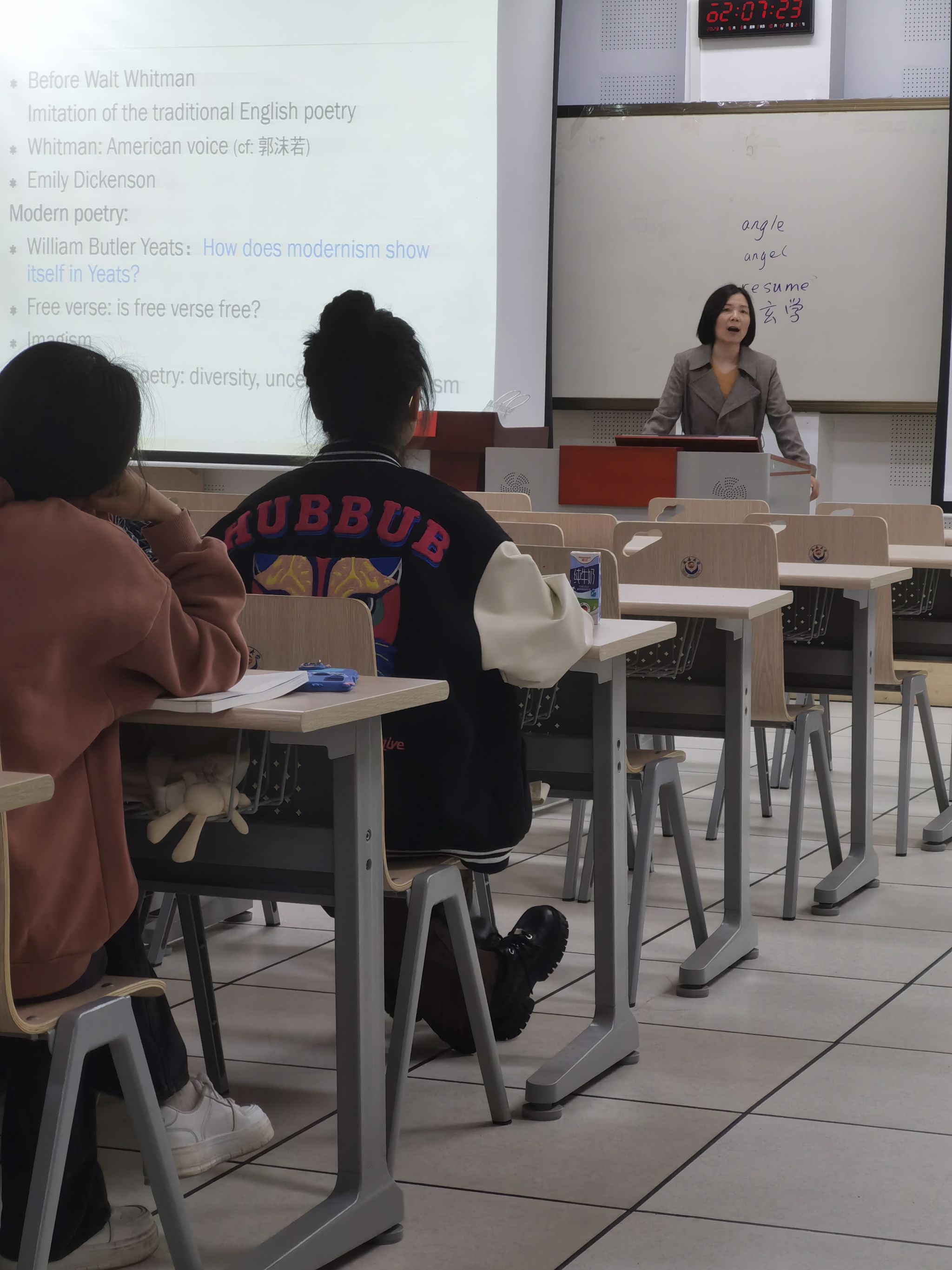 在日常的教学中,她会利用各种新的教学工具和技术,希望通过这些新的方式,让学生们能更深入、更生动地理解和欣赏外国文学。她通过各种途径引导学生进行广泛阅读,在夯实专业基础的同时提升综合人文素养。