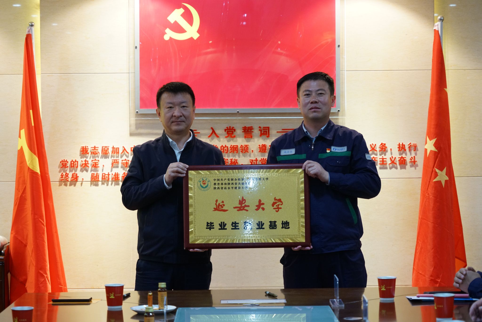 座谈期间,赵志强介绍了公司的参会人员,并对延大师生的到来表示热烈欢迎与感谢。王俊虎从学院的发展历史、学科建设、师资力量、教学成果、就业情况等方面作了介绍,并就此次校企合作洽谈提出了构想,希望能够早日建立联系,加深双方交流合作。经过深入座谈交流,校企双方就产教融合、实习就业、党团联建、人才培训等方面达成了合作共识,签订了校企合作实习就业基地建设协议书并进行了授牌。
