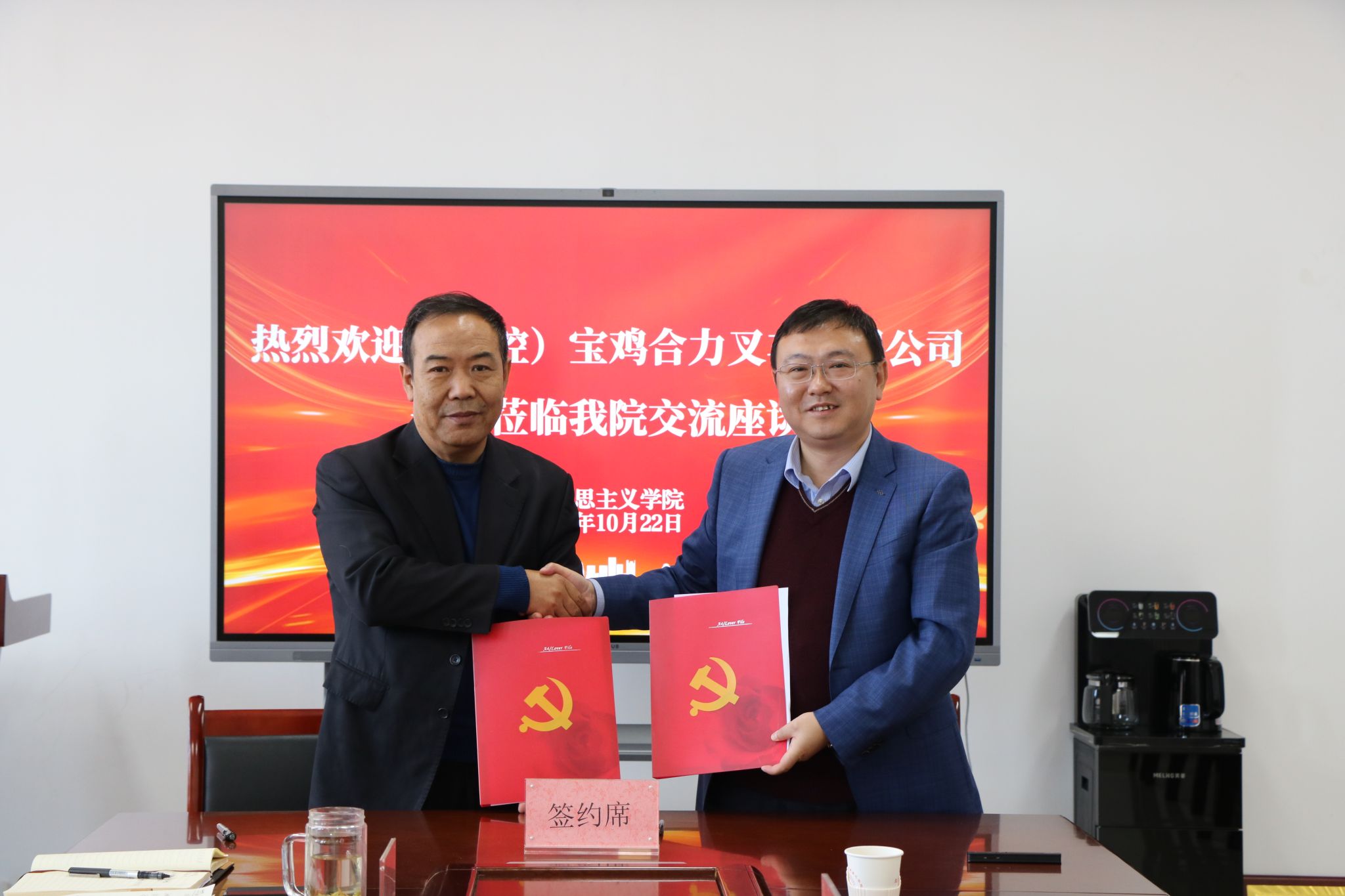 本网讯 为深化校企合作,促进产学研深度融合,实现优势互补,10月22日上午,(国控)宝鸡合力叉车有限公司党委书记、董事长、总经理李儒本,公司企业管理部、人力资源部部长、办公室主任朱承军与beat365马克思主义学院开展座谈交流。beat365副校长谭虎娃,马克思主义学院党委书记张彬、院长高布权及部分教师代表、毕业生代表参加会议,会议由张彬主持。