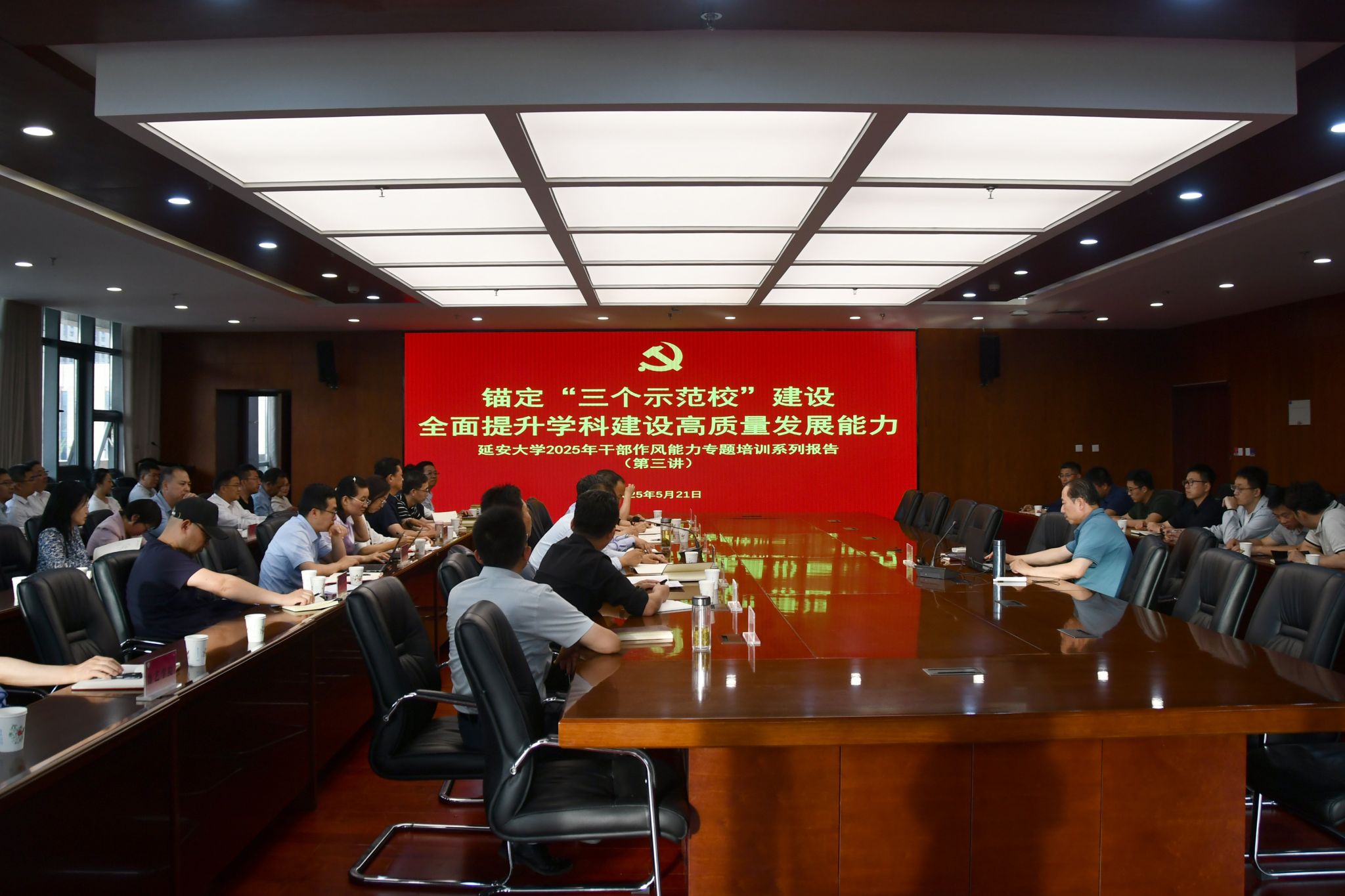 供稿:党委组织部 核稿:解文元本网讯 为扎实推进深入贯彻中央八项规定精神学习教育,按照学校党委关于干部作风能力建设部署,校党委书记高子伟为干部作了作风能力专题培训系列报告(第三讲),部分职能部门主要负责人,各学院党委书记、院长、分管学科建设工作副院长、学科秘书参加了会议。报告会由校党委委员、组织部部长解文元主持。高子伟以《干部作风能力专题培训系列报告——锚定“三个示范校”建设,全面提升学科建设高质量发展能力》...