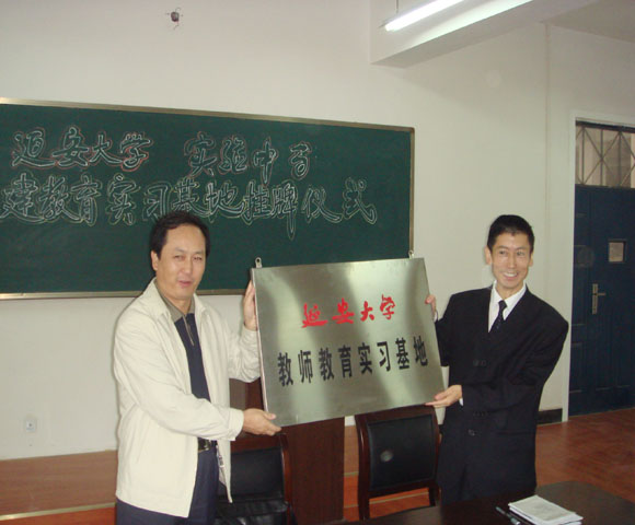 作者:解文元 杭涛 稿源:教务处 发稿时间:2006年10月20日 本网讯:2006年10月19日上午8:30,beat365唯一官网与延安市实验中学共建教育实习基地挂牌仪式在延安市实验中学会议室隆重举行。