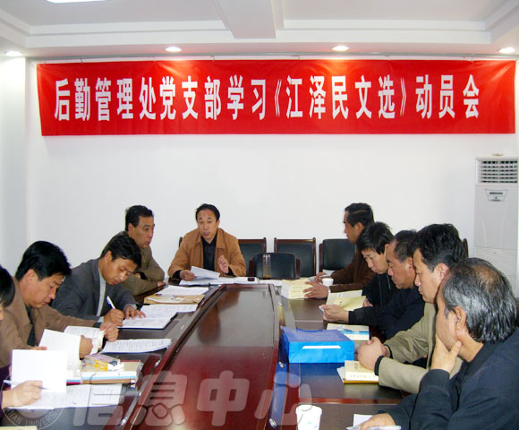 记者:徐承圆(实习生) 稿源:校办 发稿日期:2006-10-20 本网讯 10月20日上午,后勤管理处党支部在逸夫楼第二会议室召开了学习《江泽民文选》动员会。