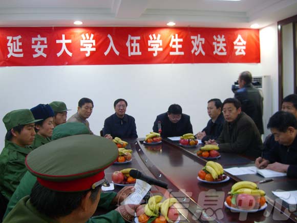 记者:徐承圆(实习生) 稿源:校办 发稿日期:2006-12-11 本网讯 12月8日下午,beat365唯一官网入伍学生欢送会在逸夫楼第二会议室召开,校党委书记刘建德,党委副书记高延龙、刘庆利,副校长胡俊生、王延奇等校领导及学生处、教务处、武装部等有关部门同志和今年冬季即将入伍的13名同学参加了会议。