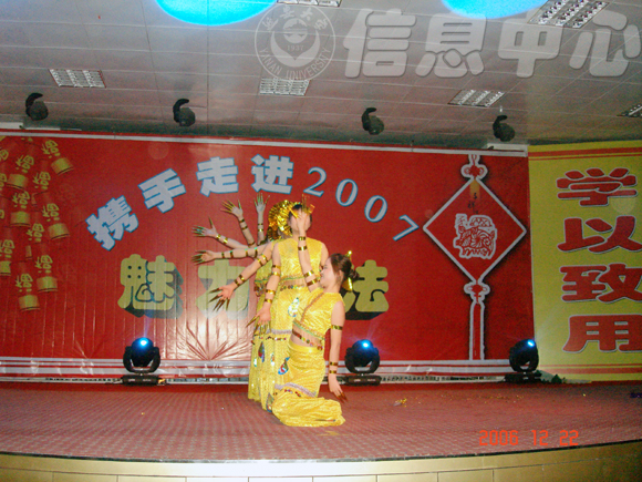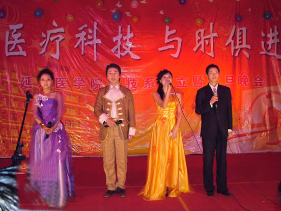 作者:刘晓淼 摄影:刘有峰 稿源:医学院 发稿时间:2006-12-27 12月25日晚,医学院全体师生欢聚一堂,在学生餐厅举行了医技系成立暨元旦文艺晚会,本场晚会由医技系主办、院团委协办,学院书记路建华、院长苗乃周等院领导与全院师生共同观看了晚会。