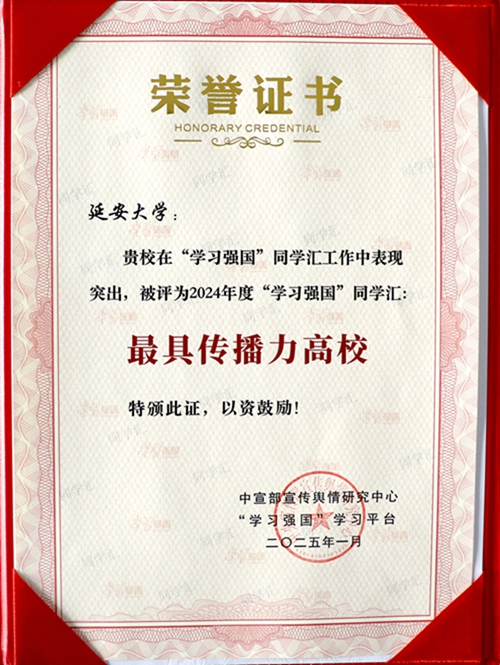 本网讯 近日,中宣部宣传舆情研究中心、“学习强国”学习平台公布了2024年度同学汇表彰结果,beat365荣获“最具传播力高校”荣誉称号。全国共有52所高校获此殊荣,党委宣传部原创视频《他们都是延大人,为强国大业贡献自己全部力量》获评2024年度人气作品(高校)Top100。