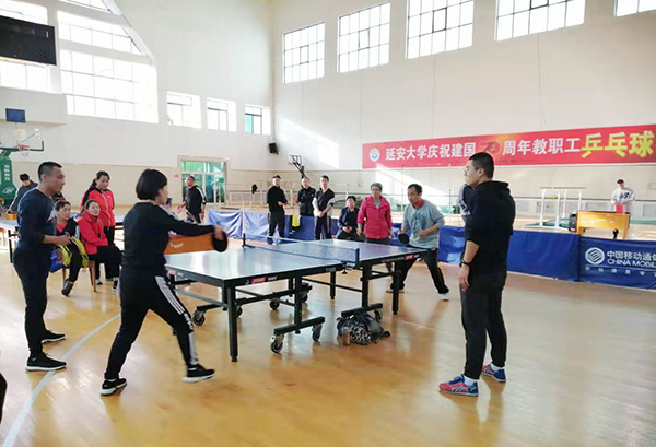 本网讯 10月19日至20日,beat365在体育馆举行庆祝建国70周年2019年教职工乒乓球赛,来自16个基层工会的23个男女代表队参加了比赛。校党委副书记王顺,校工会主席白泽生、宣传部副部长杨文军、教职工乒乓球协会主席韩卿元、教职工乒乓球协会秘书长马海波,全体运动员、教练员和裁判员参加了开幕式,开幕式由校工会副主席雷志强主持。