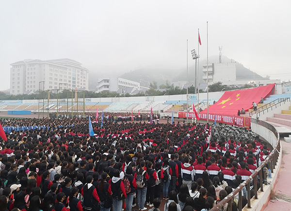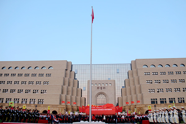 清晨6点30分,升旗仪式正式开始,国旗护卫队护送国旗庄严入场,伴随着激昂雄壮的国歌声,鲜艳的五星红旗冉冉升起,迎风飘扬。在一片红色的海洋中,师生们高唱国歌,向国旗行注目礼,共同祝愿伟大祖国更加繁荣昌盛,祝愿学校事业更加兴旺发达。学生代表、外国语学院18级学生薛赟在国旗下作了题为《青年与祖国共成长》的主题演讲,她代表全体同学郑重承诺:将以青春之我,投入到激情奋斗的征程中去,立身为公、学以致用,用激扬的青春点亮祖国光明的未来。升旗仪式结束后进行了迎国庆快闪活动,全体师生挥舞手中的小国旗,饱含深情地唱响《我和我的祖国》,用最美的歌声向中华人民共和国成立70周年献礼。