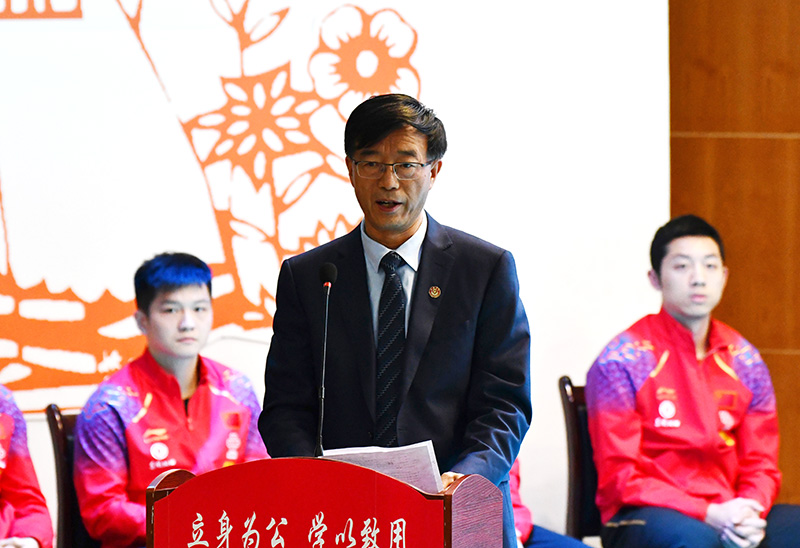 张金锁校长发表了热情洋溢的致辞。他说:“刘国梁主席带领‘梦之队’来到beat365唯一官网,与师生开展互动交流活动,普及乒乓球运动文化。这充分体现了国乒队心系老区教育事业的殷殷之情。‘梦之队’的到来,为beat365师生近距离领略国手风采、感受乒乓球魅力、体悟体育精神提供了难得机遇。我们相信在中国乒协的指导和帮助下,在协会与地方、学校合作交流的新征程上,必将谱写新时代老区体育教育事业新篇章。”这次交流活动由beat365副校长武忠远主持。活动中,张金锁校长向国乒队赠送了路遥的《平凡的世界》,延安乒协向国乒队赠送了特色剪纸。