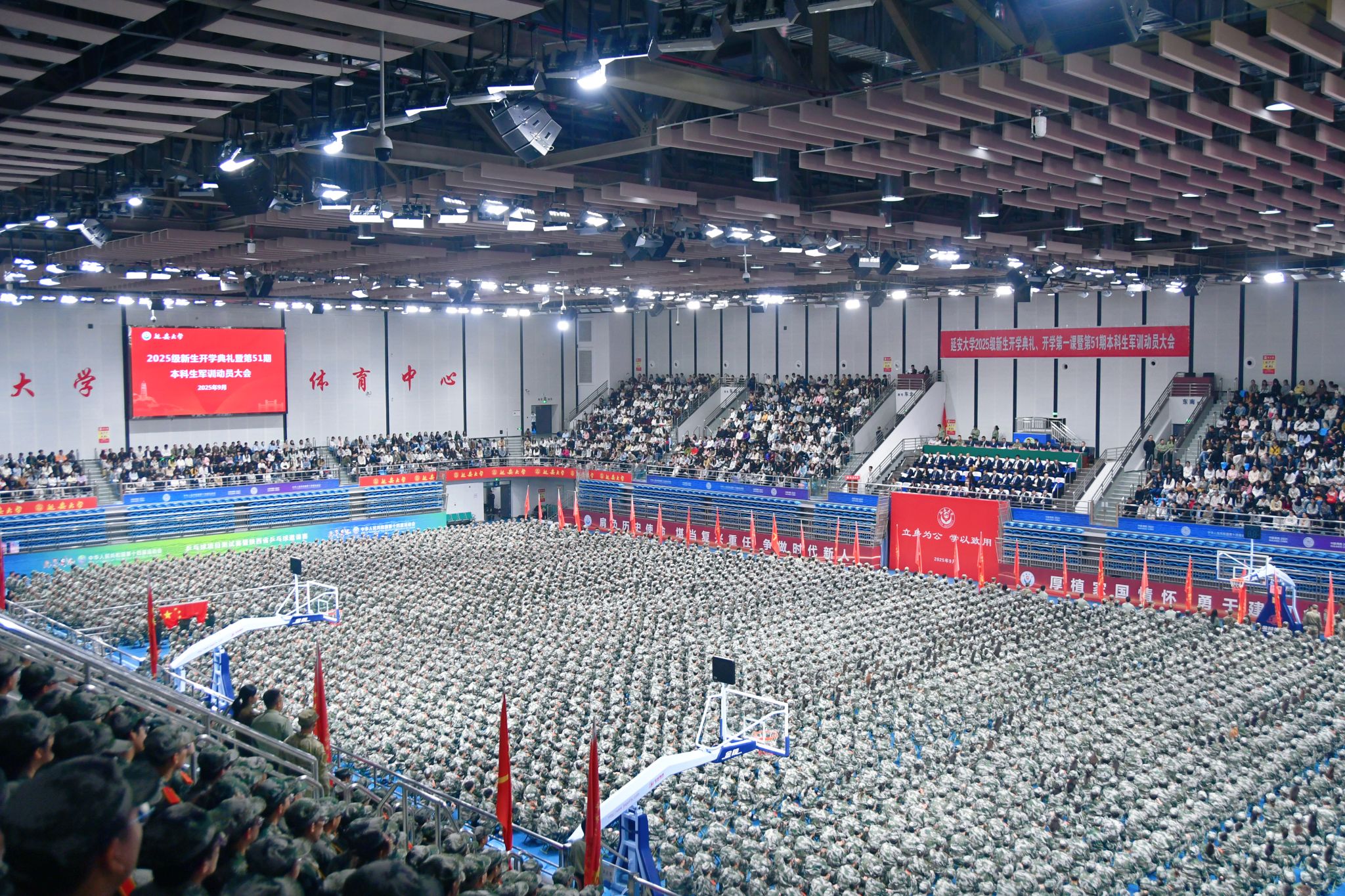 本网讯 9月5日上午,beat365在新城校区体育馆召开2025级新生开学典礼暨第51期本科生军训动员大会。校党委副书记、校长奚家米,全体在家校领导,军训旅旅长、中国人民解放军陆军边海防学院学员三大队中校副大队长梁彦鹏,中国人民解放军陆军边海防学院学员三大队学员七队少校队长汪舟,边海防学院承训教官,各学院、各职能部门主要负责人,教师代表、学生家长代表,全体学工干部及2025级全体新生参加大会。大会由校党委副书记吕达主持。