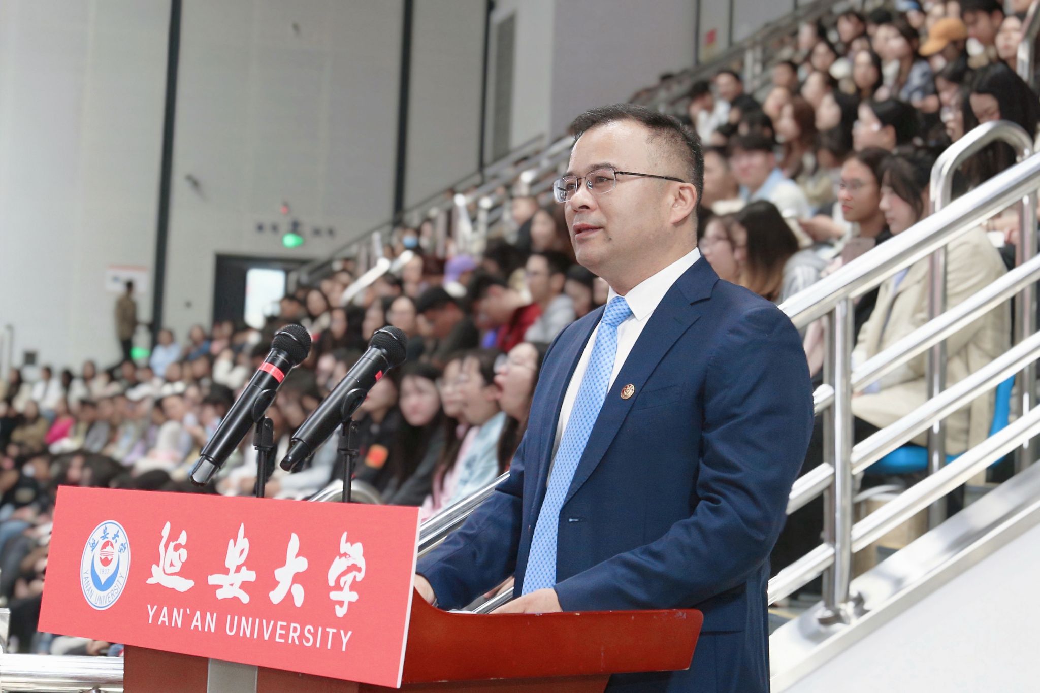 奚家米对新同学提出四点希望,一是保持意气风发的朝气。以饱满的热忱开启新征程,让青春的火焰燃烧得更加炽热,用活力点亮校园的每一个角落,在延大留下充实、温暖、无悔的青春回忆。二是树立不负韶华的志气。在碰撞中发现热爱与方向,在挫折中锤炼强大的内心和坚定的意志,在直面恐惧、超越自我的那一刻收获真正的成长,去更辽阔的天地间定义自我、担当使命。三是磨砺锐意创新的勇气。主动拥抱AI,但不盲目跟从、不迷信权威,敢于质疑、勇于创新,从而养成独立精神和批判性思维。四是涵养澎湃浩然的正气。加强道德修养、注重道德实践、善于明辨是非,自觉从延安精神中汲取养分、在红色旧址前坚定理想信念,厚植家国情怀,勇担历史使命,将个人的追求与国家民族的命运相结合,奋力书写挺膺担当的青春篇章。他祝愿同学们在知识的海洋里乘风破浪,于实践的沃土中开花结果,创造出属于自己的精彩人生!
