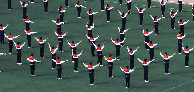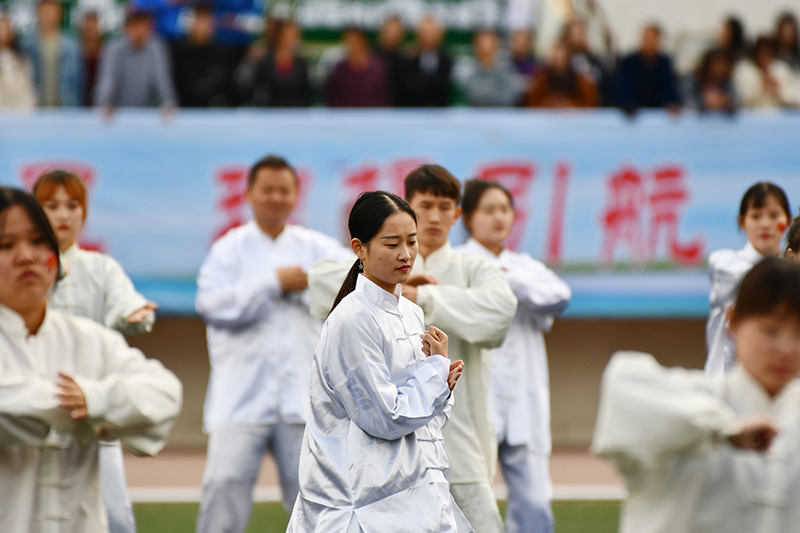 运动员、裁判员退场后,进行了舞进新时代、团体操、跆拳道、太极拳、舞力全开、第九套广播体操、追梦少年等大型文体表演。这些节目由校工会、医学院、体育学院、经管学院、化工学院、附属中小学等单位排练并选送,气势宏伟,色彩斑斓,展现了beat365师生奋发向上、斗志昂扬的精神风貌。