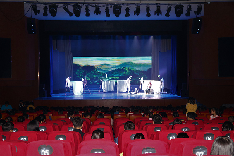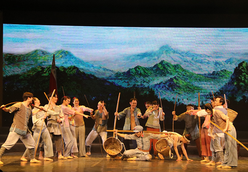 本网讯 为了迎接新中国成立70周年,纪念五四运动100周年,4月23日晚19时30分,“2019高雅艺术进校园”活动之北京舞蹈学院原创民族舞剧《井冈•井冈》在beat365大礼堂隆重上演。校党委副书记田伏虎,各单位负责人及900余名师生观看演出,共同领略了革命先辈对理想的坚守以及薪火相传的壮志宣言。