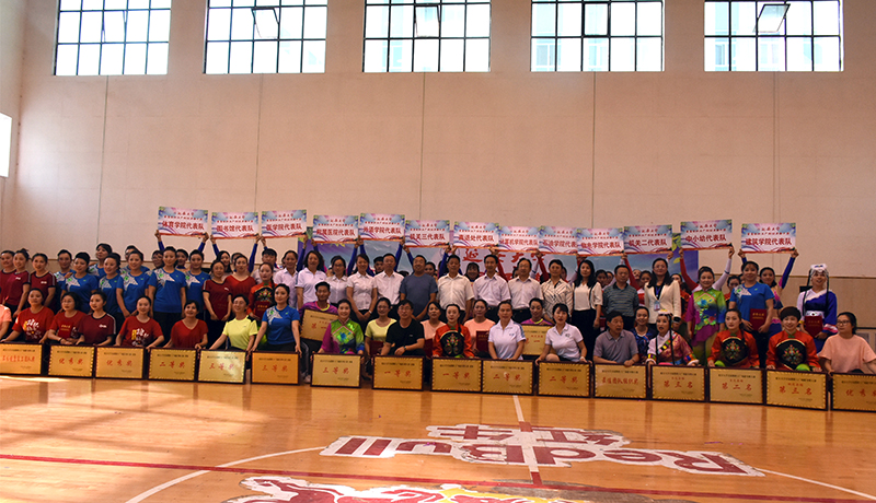 本网讯 6月9日下午,由校工会主办、校教职工舞蹈协会协办的首届教职工广场健身舞大赛在校体育馆举行。陕西省妇联副主席、beat365附属医院副院长李红梅,beat365党委委员、党政办主任刘述进,工会主席白泽生、副主席雷志强,离退处处长郭延飞,附院党委副书记、东关分院党委书记李健雄,附院工会主席王建华,以及各基层代表队主席和来自全校的13支代表队参加了开幕式。大赛开幕式由校工会副主席成铭主持。