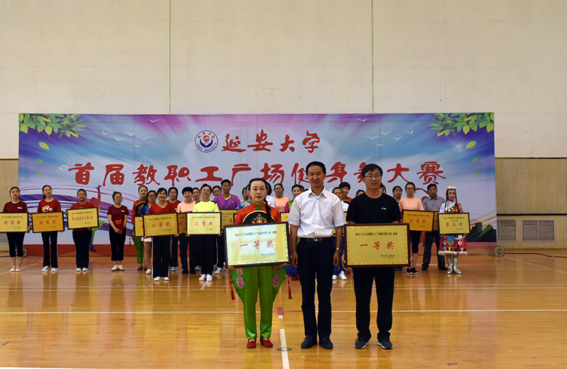 经过近三个小时紧张激烈的比赛,最终体育学院代表队和机关二代表队取得大赛团体一等奖,附属医院代表队、医学院代表队和离退处代表队取得大赛团体二等奖,图书馆代表队、计算机学院代表队和机关三代表队取得大赛团体三等奖,石油学院代表队、中小幼代表队、外语学院代表队、建筑学院代表队和物电学院代表队取得大赛团体优秀奖;体育学院代表队、医学院代表队和机关二代表队取得大赛规定套路的前三名;体育学院代表队、机关二代表队和附属医院代表队取得大赛自选套路的前三名。石油学院获得最佳健康活力团体奖,附属医院获得最佳团体组织奖。体育学院王辉、附属医院杨晓娟、中小幼姚晓莉等13位同志被评为“明星运动员”。