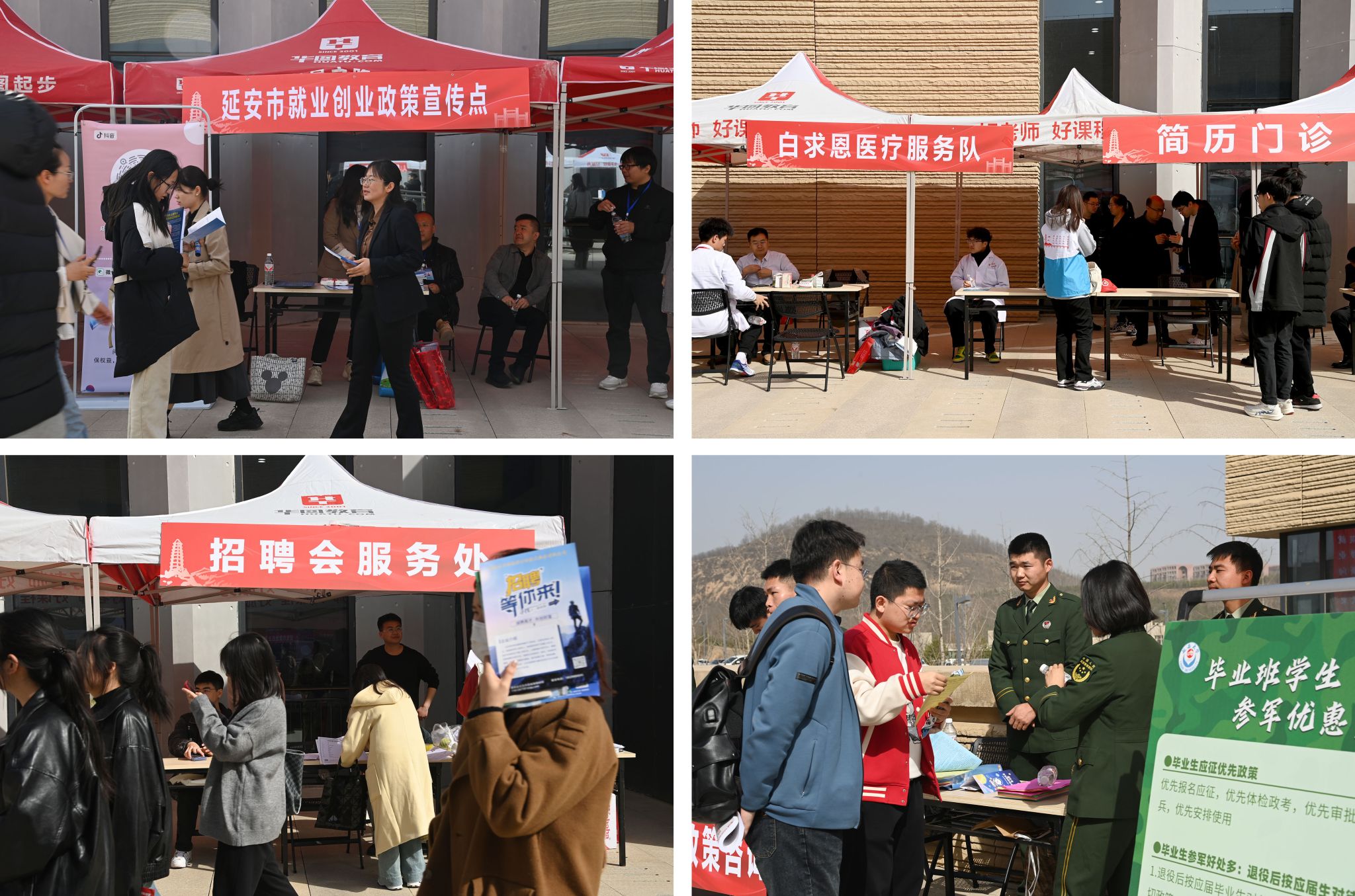 为办好本次招聘会,就业指导中心扩大宣传,积极邀请单位来校招聘,努力提升参会单位数量和质量。本次招聘会呈现“单位质量高、招聘需求旺、行业分布广”的特点,一是延安市市直事业单位组团参会,参会单位包括延安职业技术学院、延安职业技术学院附属小学、延安职业技术学院职业技能培训中心等9所学校,延安市人民医院等9家医疗卫生单位,延安干部学院、延安市委党校等26家单位。二是中国中冶、中国石油、中国能建、中国移动、中国联通、陕西建工、北方民爆等一批友好合作国企持续来校。三是广东理工学院、云南医药健康职业学院、临猗县人力资源和社会保障局等来校选聘高层次人才,涉及卫生、教育、电子、建筑、制造、文化体育等多个行业,为毕业生提供多样化就业选择。