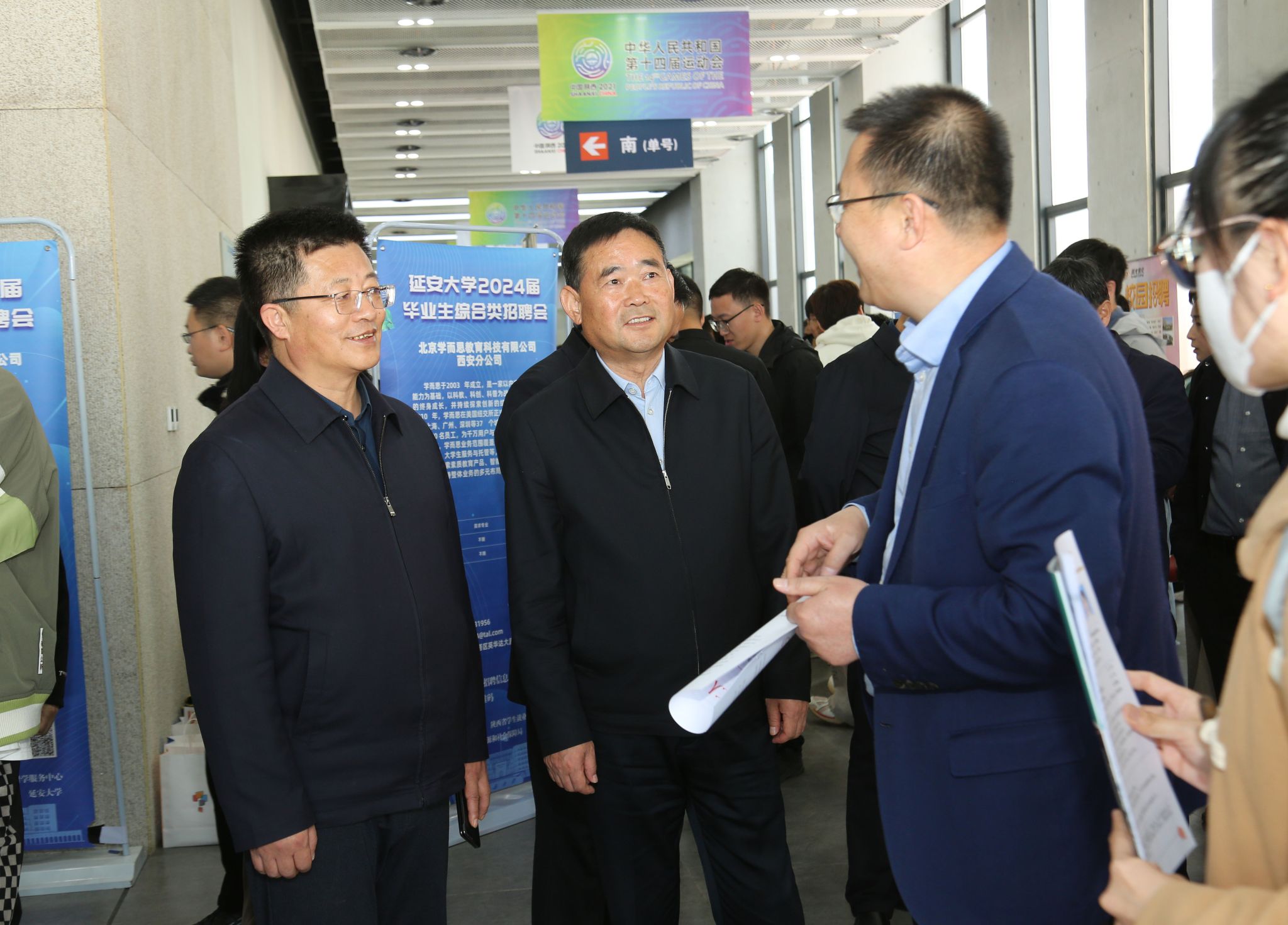 招聘会期间,校党委副书记杨伟宏,校党委副书记、纪委书记王占金,延安市人社局局长刘涛,延安市人社局副局长李驿峰,统战部、学工部、宣传部、团委、财务处等部门负责同志,各学院院长、书记和学工干部,深入会场,与用人单位代表亲切交流,了解单位招聘情况和beat365毕业生工作表现,征求用人单位对人才培养等方面的意见和建议。