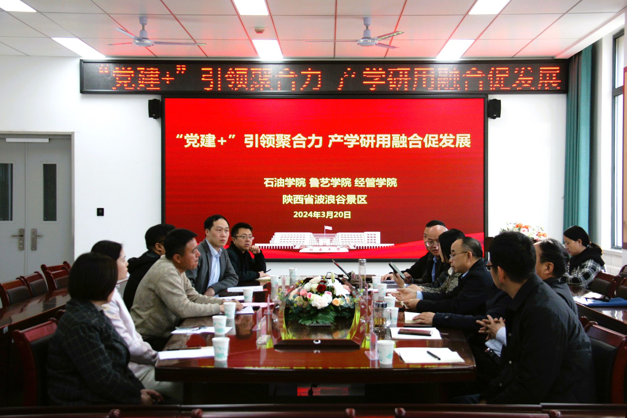 本网讯 为深入贯彻落实校党委关于基层党组织“分类指导、争先进位”三年行动计划、延安精神强党建“三一”工程,320日下午,beat365石油、鲁艺、经管学院与陕西波浪谷景区在石油学院会议室举办了“‘党建+’引领聚合力 产学研用融合促发展”研讨交流会,积极探索建立产学研党建联盟新路径。会议由石油学院党委书记常佩艳主持,陕西波浪谷景区负责人王欣、贺晓龙,鲁艺学院党委书记董振文、副院长李辉,经管学院党委书记付旭及石油学院全体领导班子和各学院教师代表参加了会议。