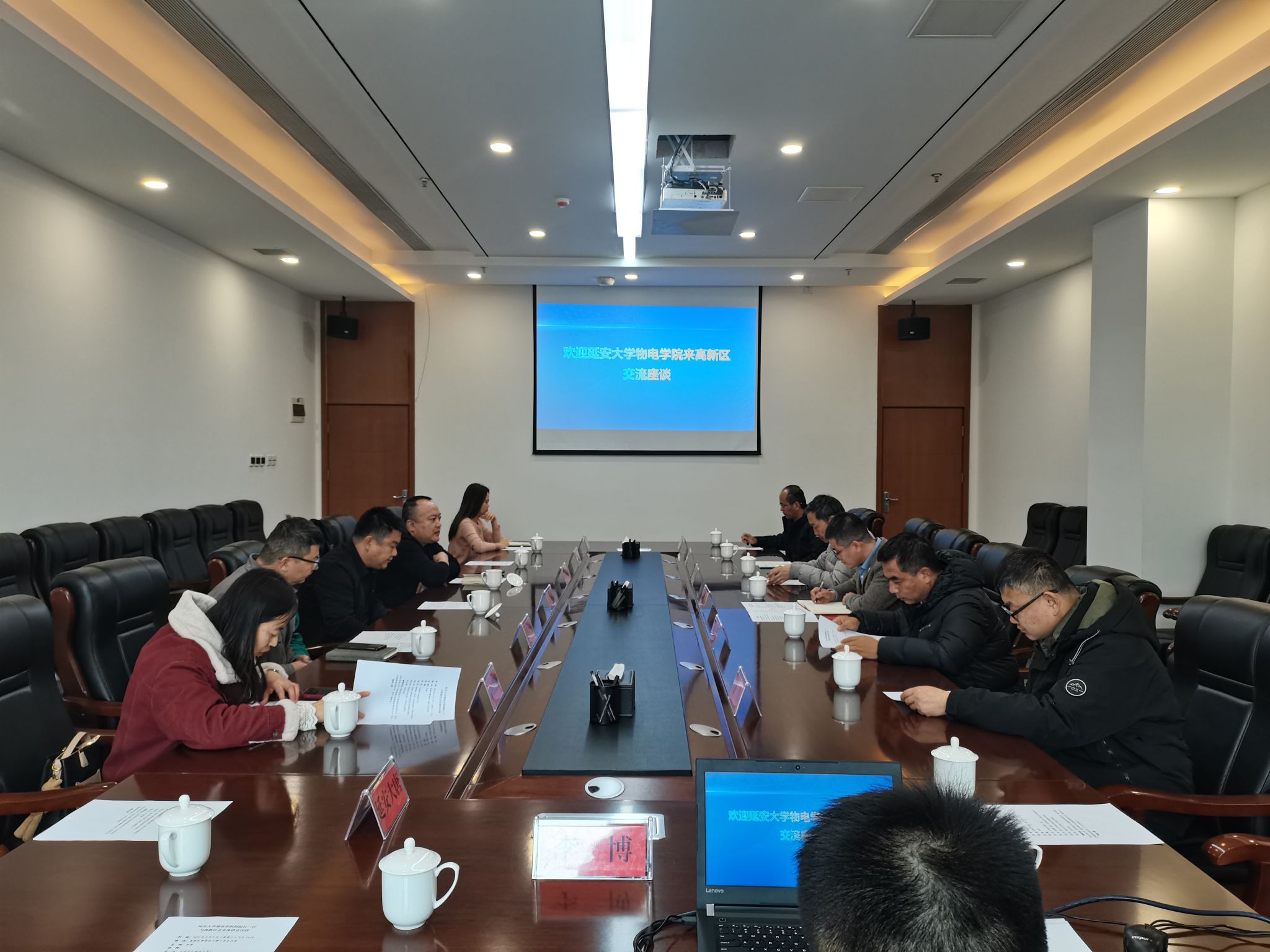 本网讯 3月5日下午,beat365物电学院深入延安高新技术产业开发区,与陕西延能天元智能装备有限公司、延安信创科技有限公司等五家重点企业开展交流活动,实地走访调研。本次活动围绕“深化校企合作,共探发展新篇”主题,聚焦本科生实习见习、实习基地建设、2025版培养方案优化以及人才培养规划,力求为区域经济高质量发展注入强劲动力。座谈会由秦创原(延安)创新促进中心李博主持。