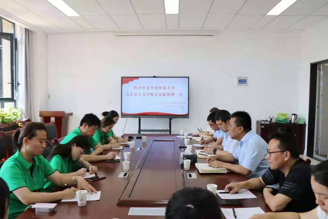 本网讯 7月7日下午,华南师范大学马克思主义学院王京跃教授一行5人来beat365马克思主义学院进行考察交流。beat365副校长、马克思主义学院院长谭虎娃、学院党政全体人员及教师代表参加了活动。