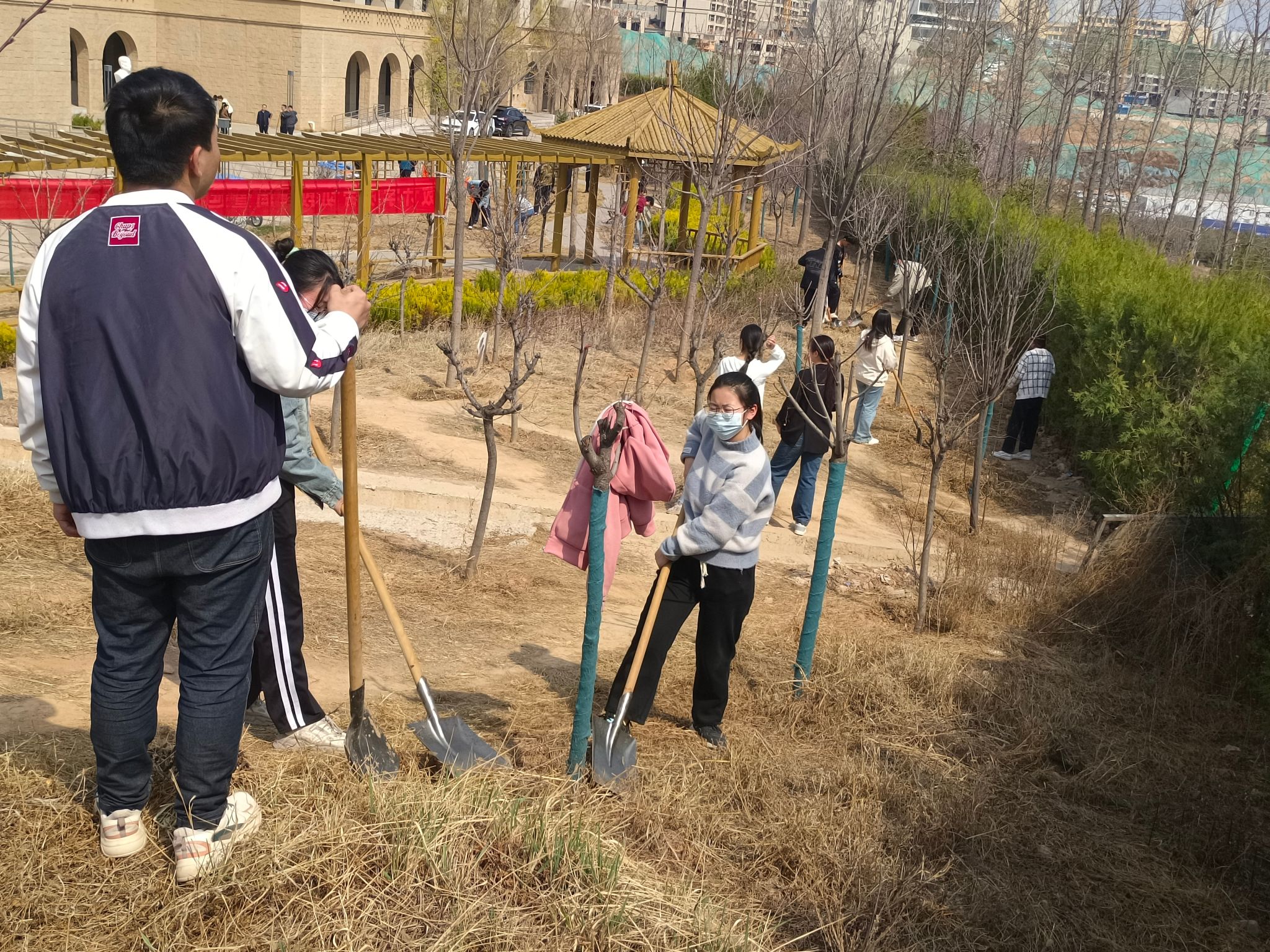 本网讯 为深入贯彻落实党的二十大精神,进一步推进生态文明建设,践行劳动教育,建设美丽校园,3月30日下午,数计学院党委与陕西南科物业服务有限公司在信息大厦周边开展“我为校园添抹绿”主题党日活动。教师党支部、学生党支部80余名党员与南科物业工作人员20余人参加活动。
