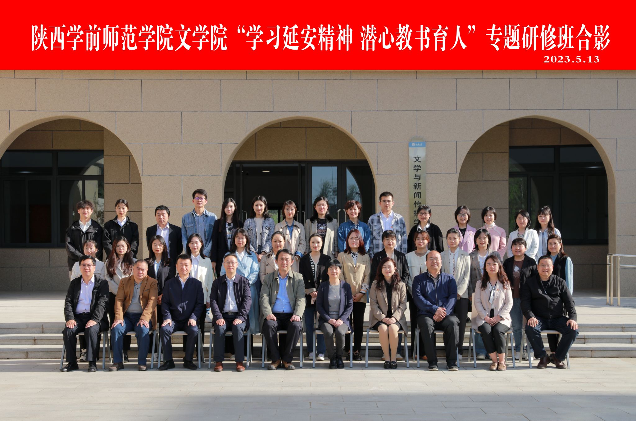 本网讯 5月12日至14日,陕西学前师范学院文学院院长牛文明,文学院党委书记杨阳,以及27名教师和4名学校师生代表,前来beat365文学院调研交流并开展“学习延安精神,潜心教书育人”专题研修活动。文学院领导班子成员、师生代表出席了研修班开班仪式及调研交流活动。文学院院长王俊虎主持开班仪式。