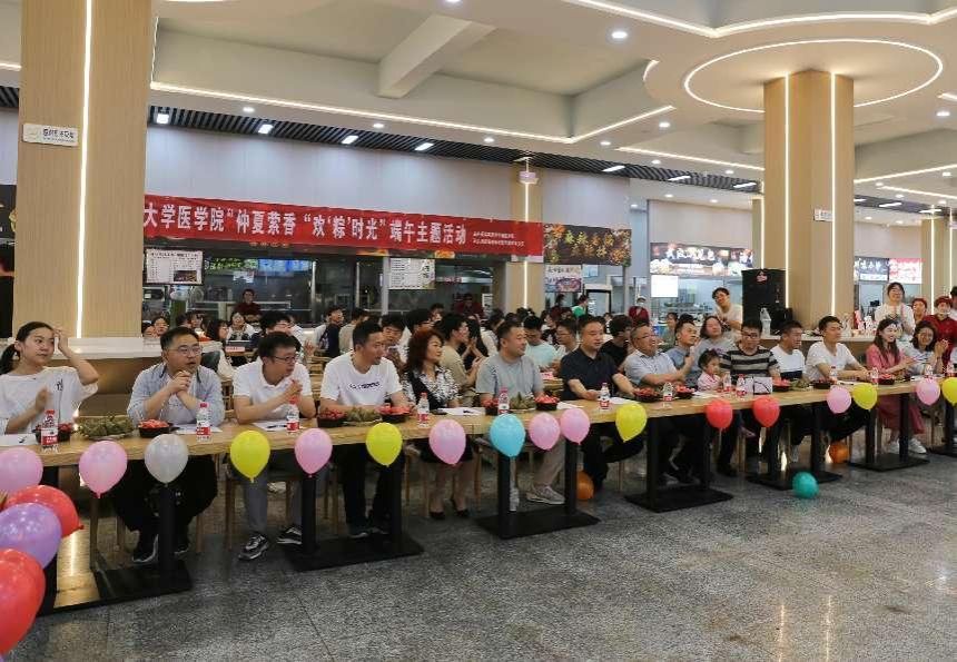 第三餐厅负责人周晓利致辞并宣布活动正式开始。医学院各班级代表积极参与并进行了精彩汇演。为加强中外学生深入交流,宣传我国传统文化知识,本次活动特邀beat365巴基斯坦留学生共同参与。经评比,在十一支参赛队伍中决出优胜团队“粽享丝滑队”,薛宇洲等同学获“包粽子达人”称号。